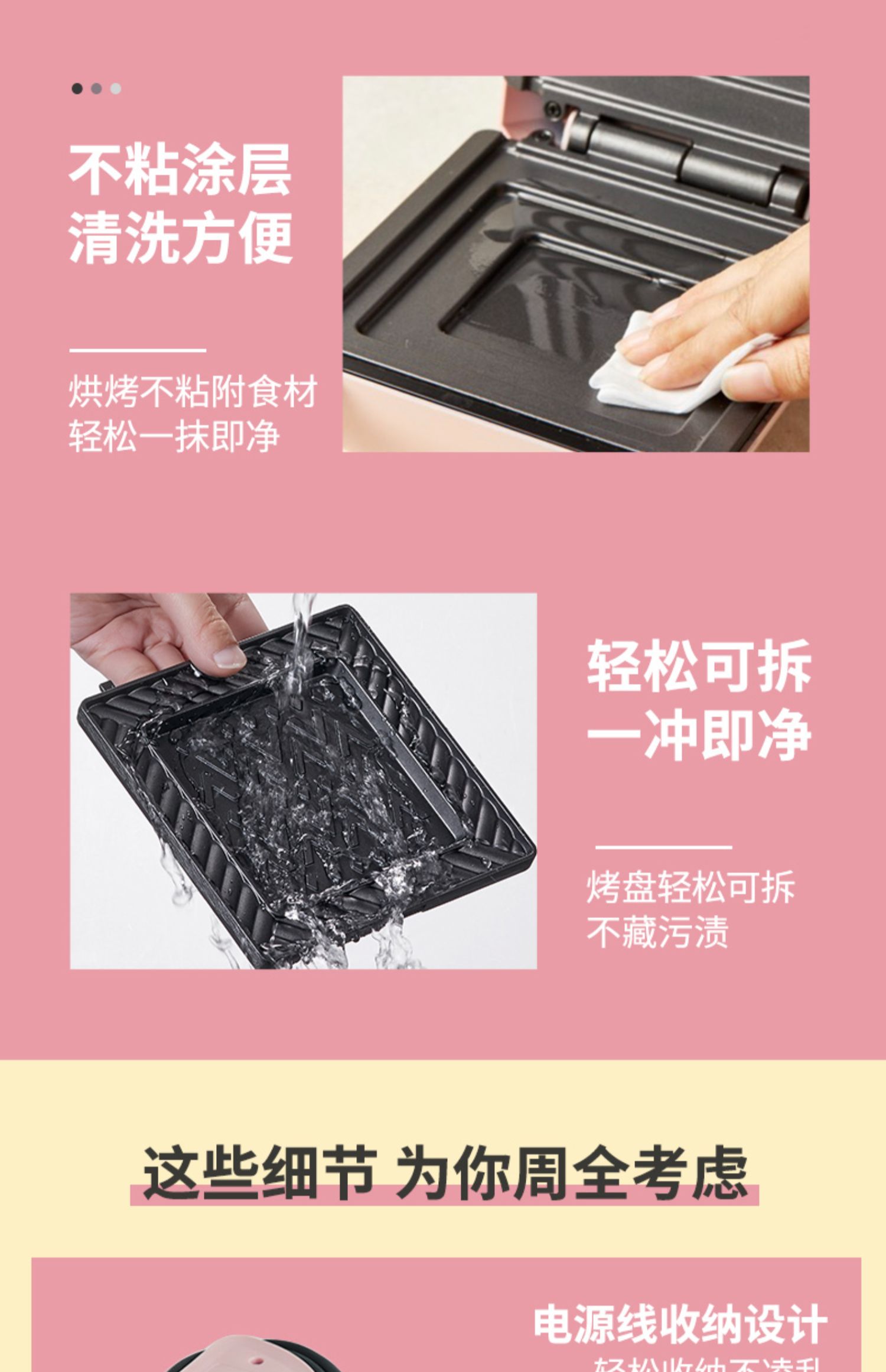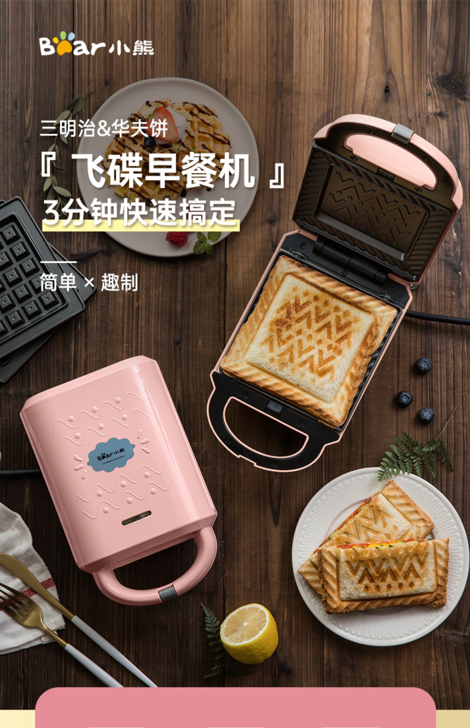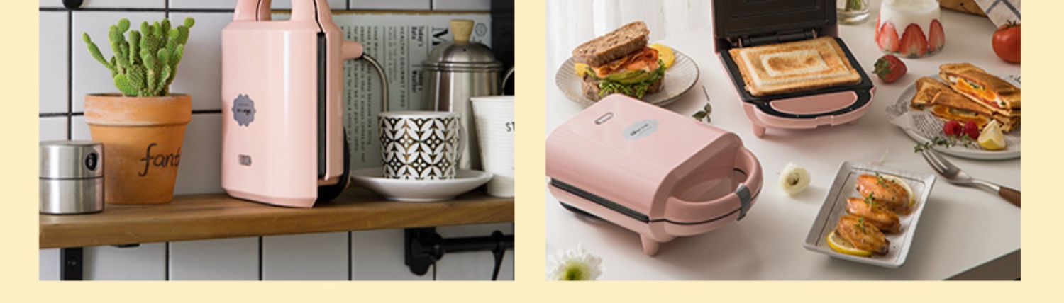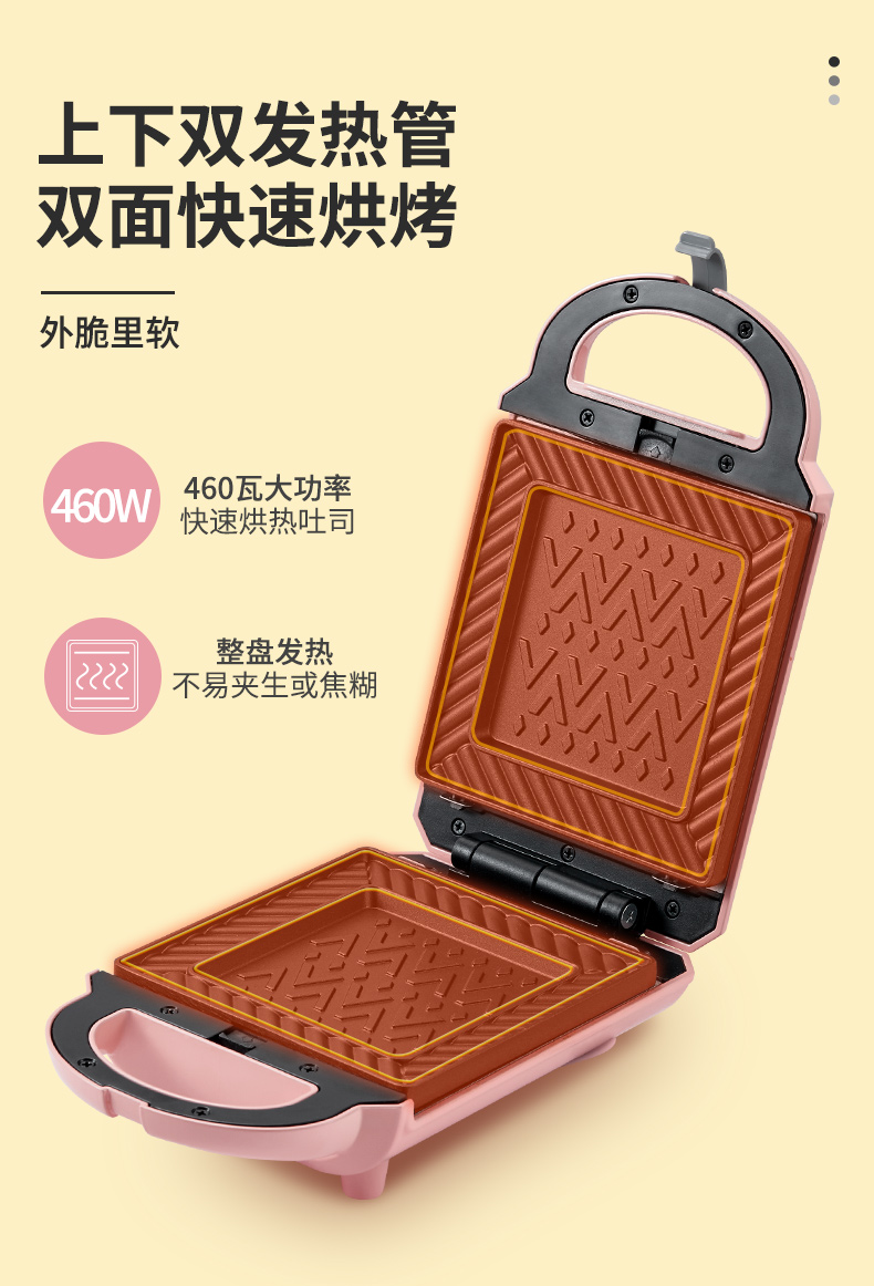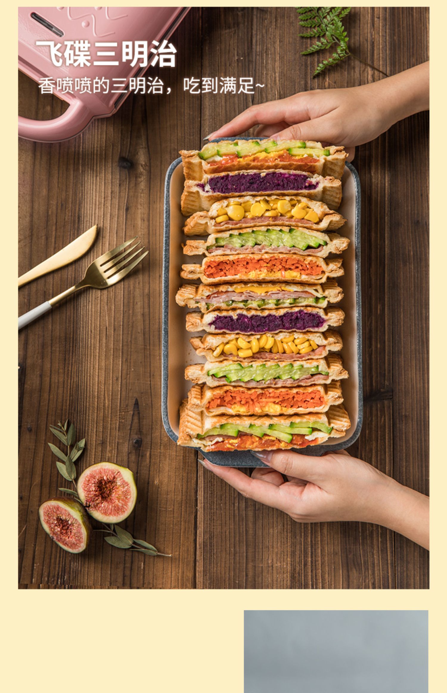 网红轻食机3分钟搞定早餐,不粘烤盘双面加热.可拆卸双面烤盘,小巧轻便不占大位置,花样早餐三明治、煎培根、煎蛋~