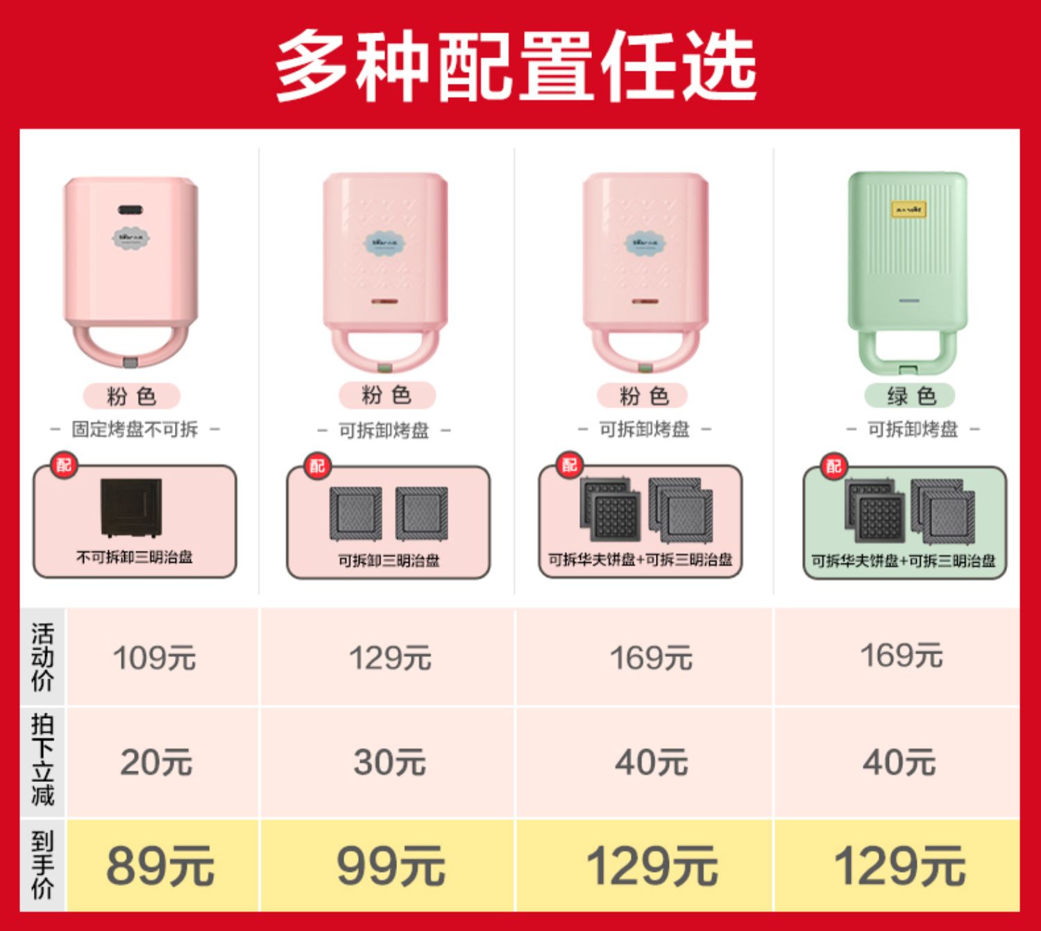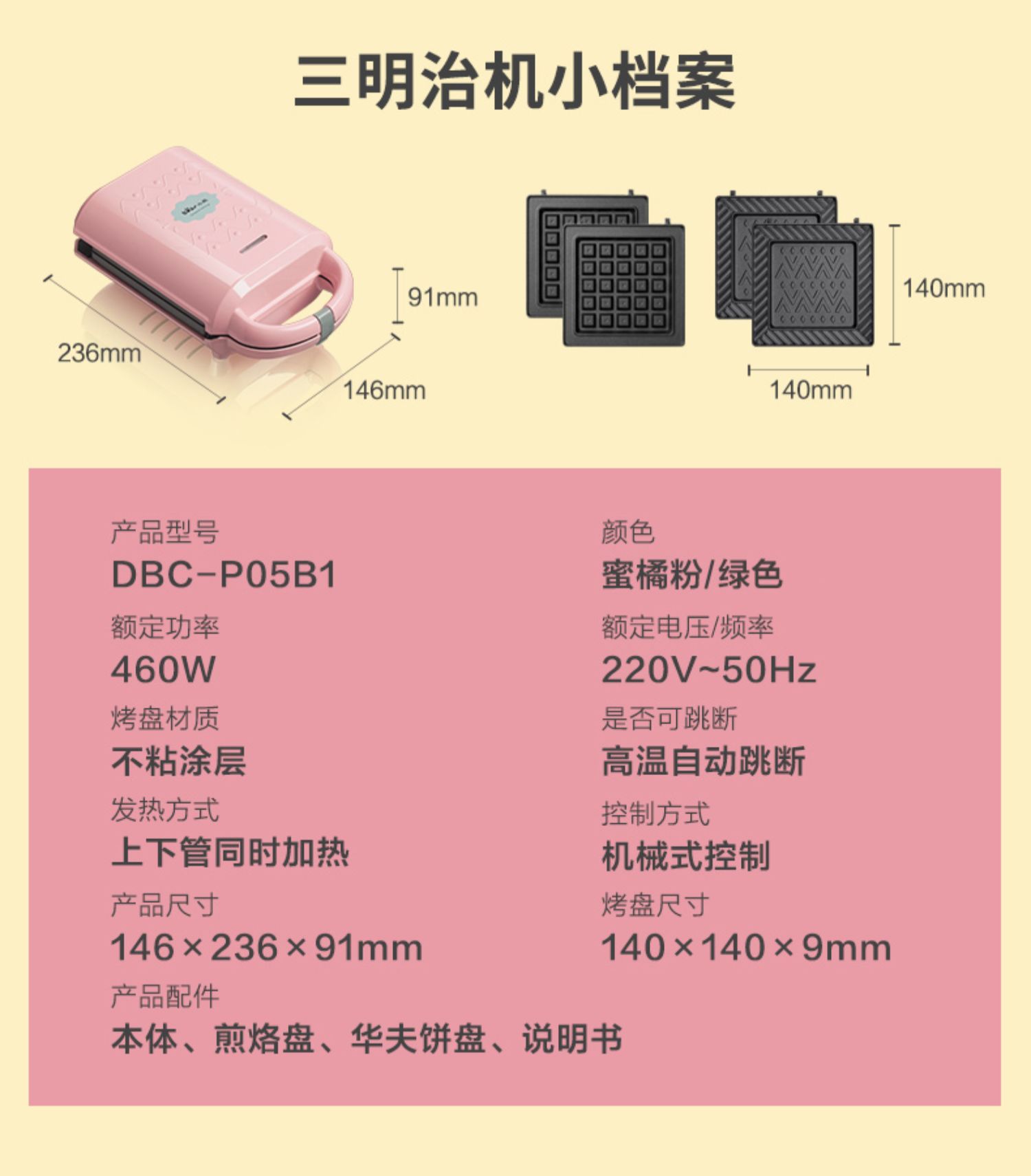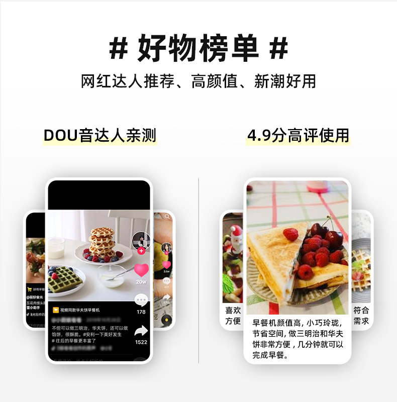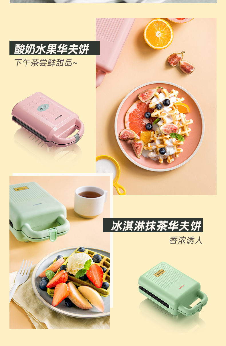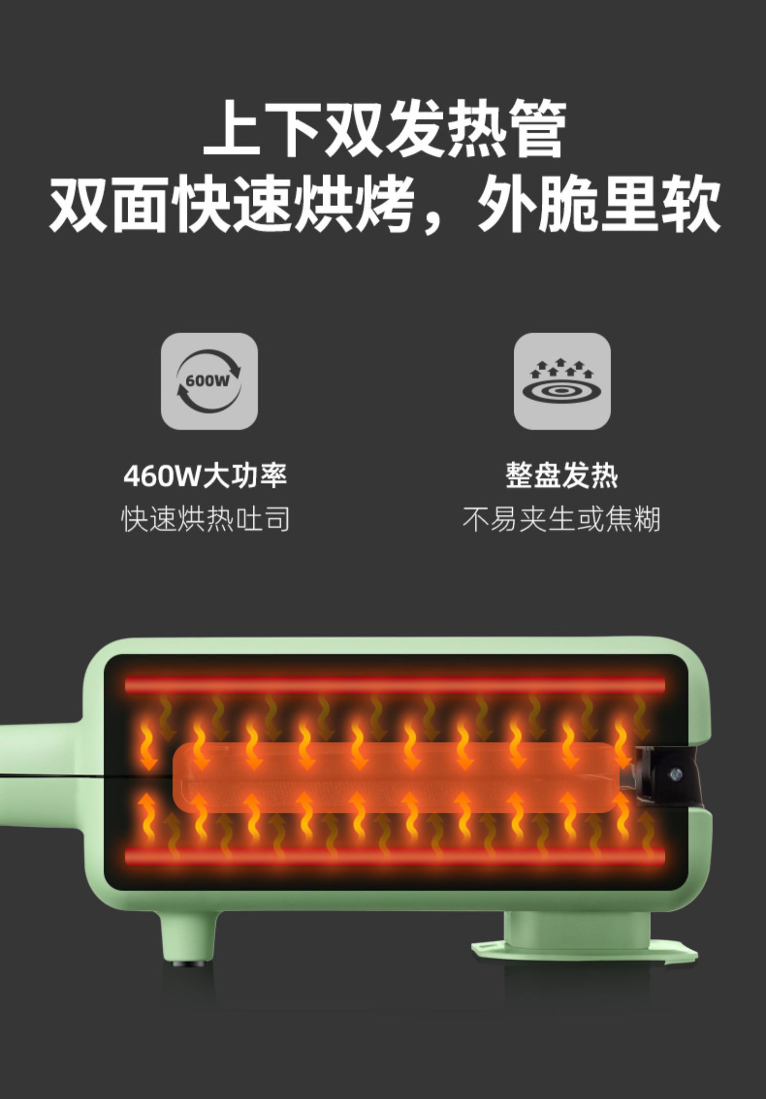 网红轻食机3分钟搞定早餐,不粘烤盘双面加热.可拆卸双面烤盘,小巧轻便不占大位置,花样早餐三明治、煎培根、煎蛋~