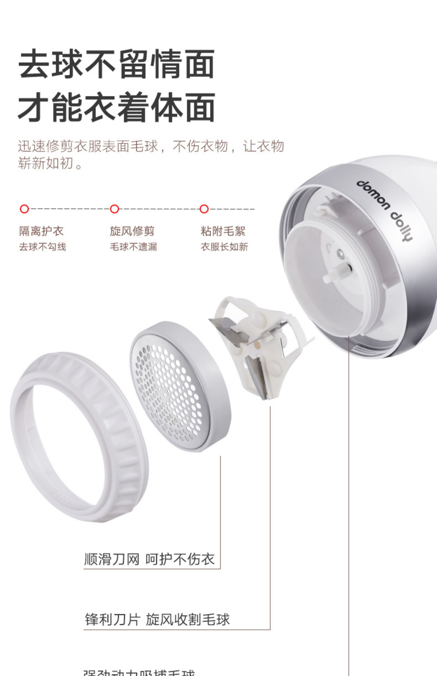 英吉利,三叶旋风刀片+蜂巢式顺滑刀网,强劲动力快速去毛球,不伤衣物,衣服焕然一新,小巧便携,一机多用,秋冬必备