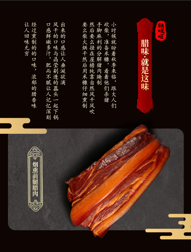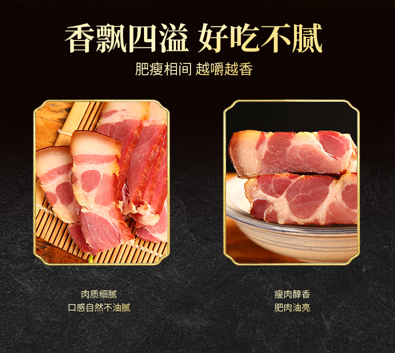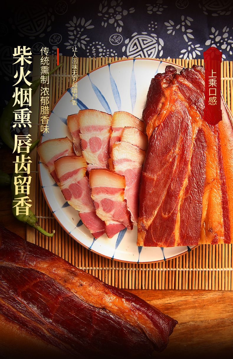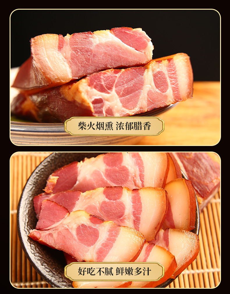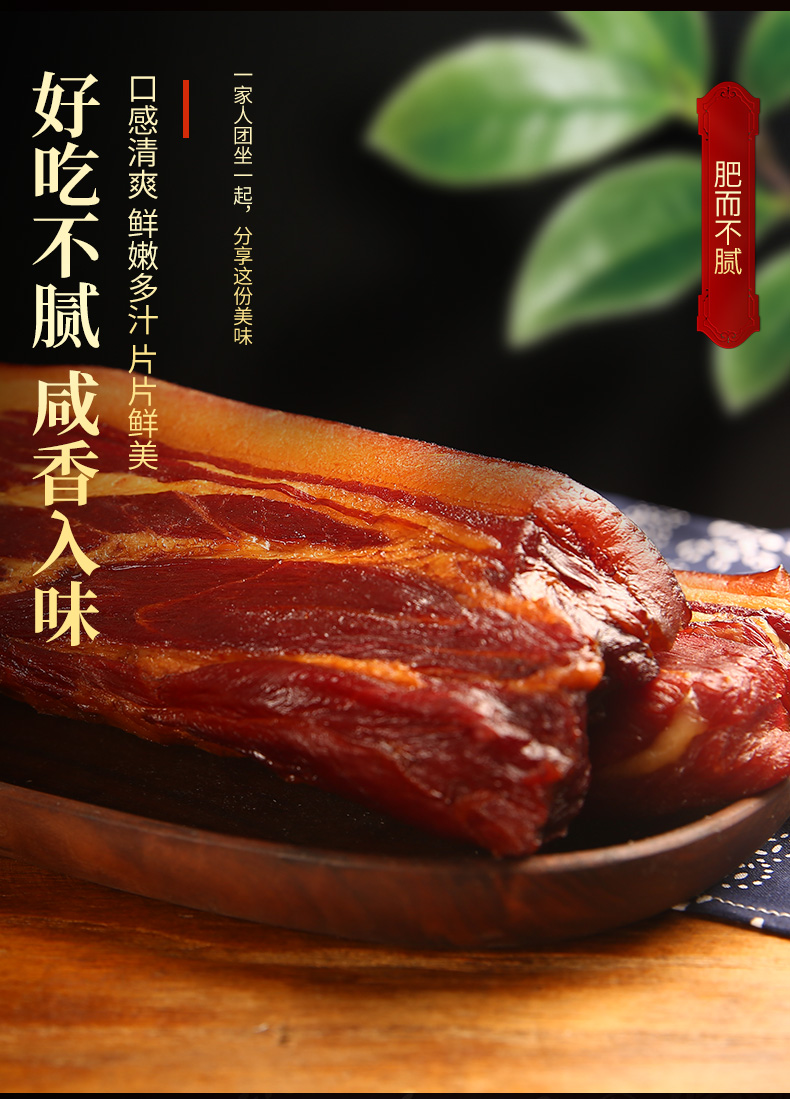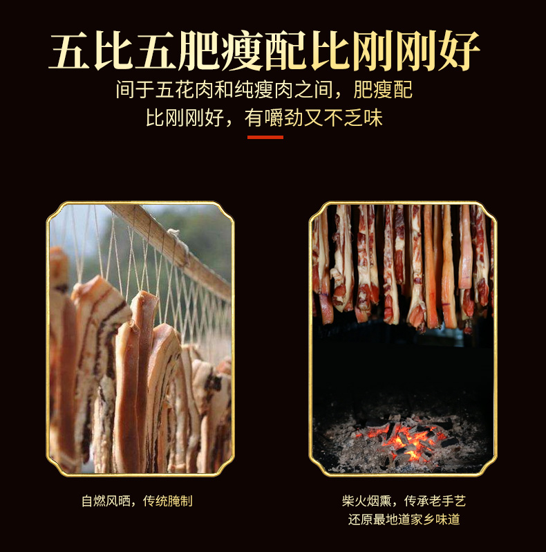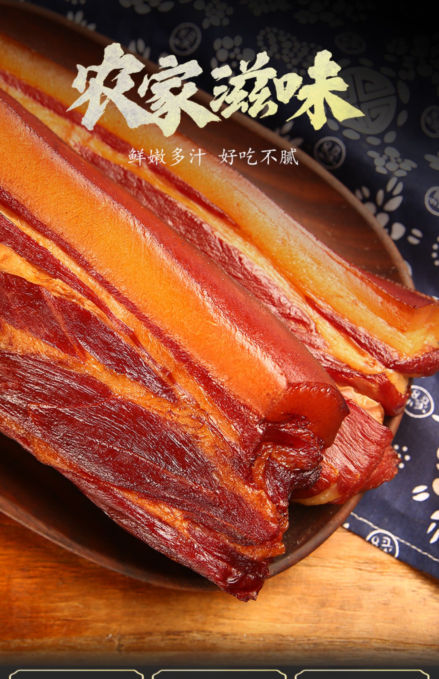 湖南正宗腊肉特产,精选合格猪肉,农家自制,片片美味且肥而不腻,肥瘦相间且均衡,传承古法,米糠烟熏,腊香四溢~