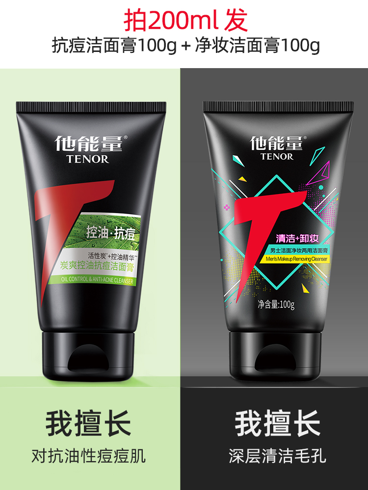 潘玮柏代言品牌,他能量活性炭男士洗面奶,大容量100ml,线下39元一支!洁净肌肤,看ko洁面活力出招,深层清洁收敛毛孔,缓解黑头,控油补水,改善粗糙,清理肌肤污垢,平衡油脂分泌,控油,清爽!