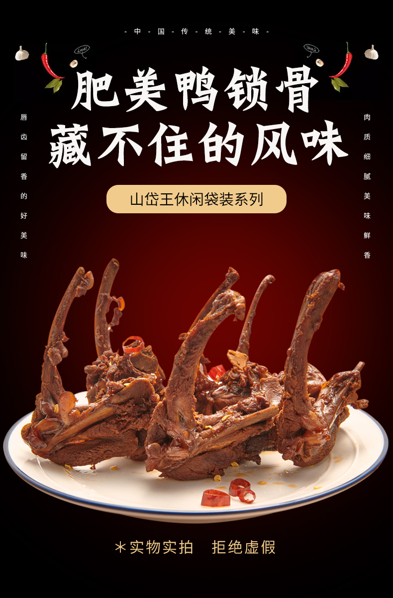【第二件5.9元,一件4个装】山岱王休闲卤味鸭锁骨大礼包,精选优质鸭锁骨,多种香料卤制,肉质紧实,鲜香可口,真材实料,藏不住的风味~满足你的味蕾!