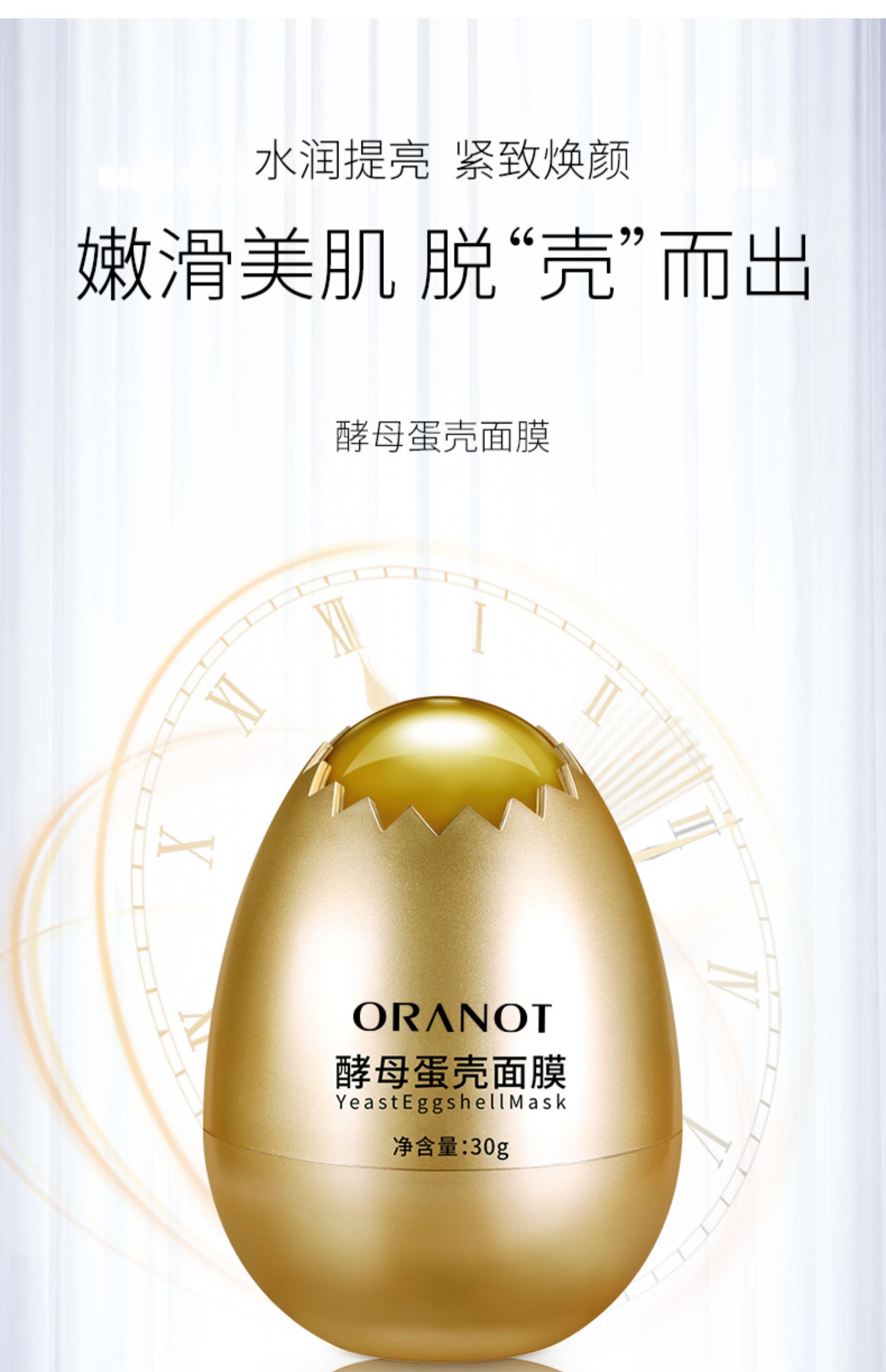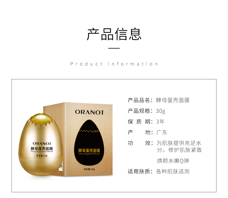 ORANOT酵母蛋蛋面膜,Q弹质地,轻松吸收,一敷就成膜!提取酵母精粹,紧致修复,补水保湿,美白提亮于一身!轻松敷出蛋蛋肌,让好皮肤脱壳而出!