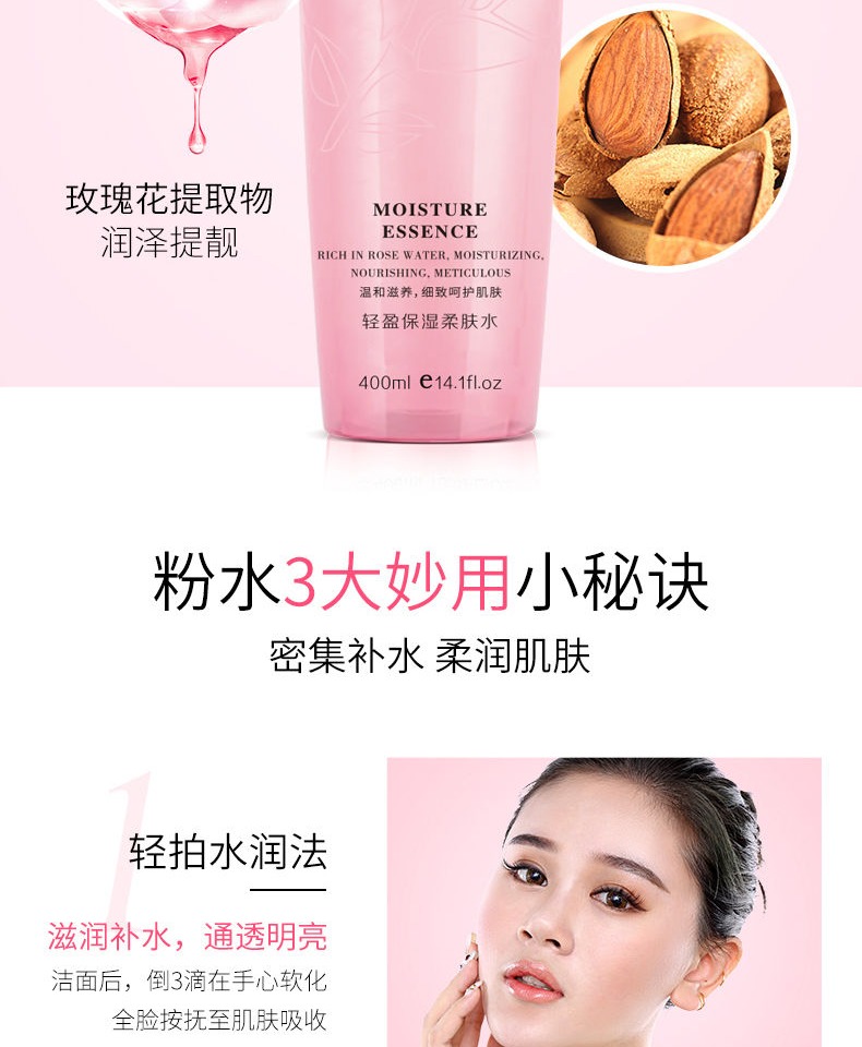 美白补水收缩毛孔,咕噜咕噜让肌肤喝饱水!温和滋养,纯净自然,焕活肌肤,400ml大容量怎么用都不心疼!