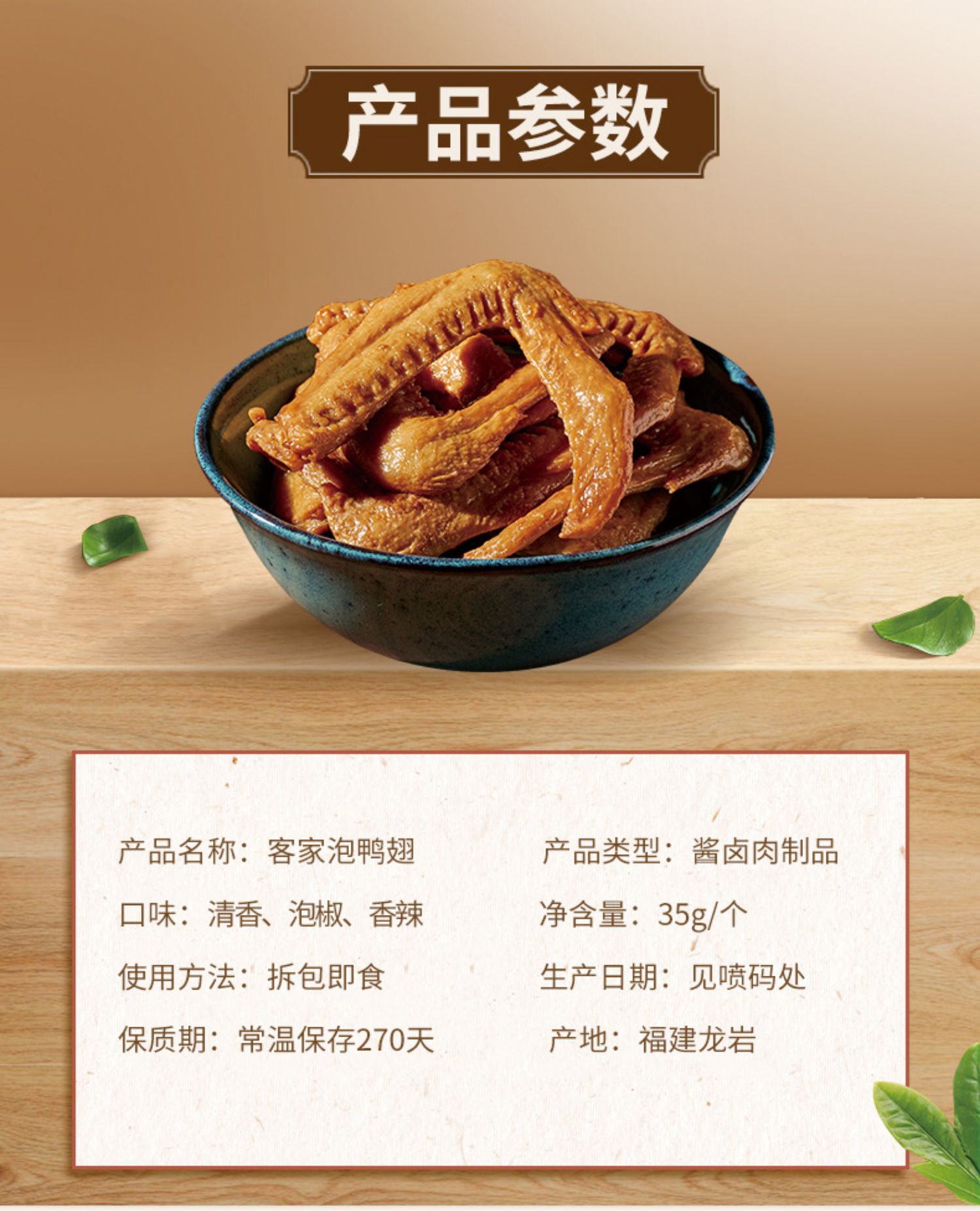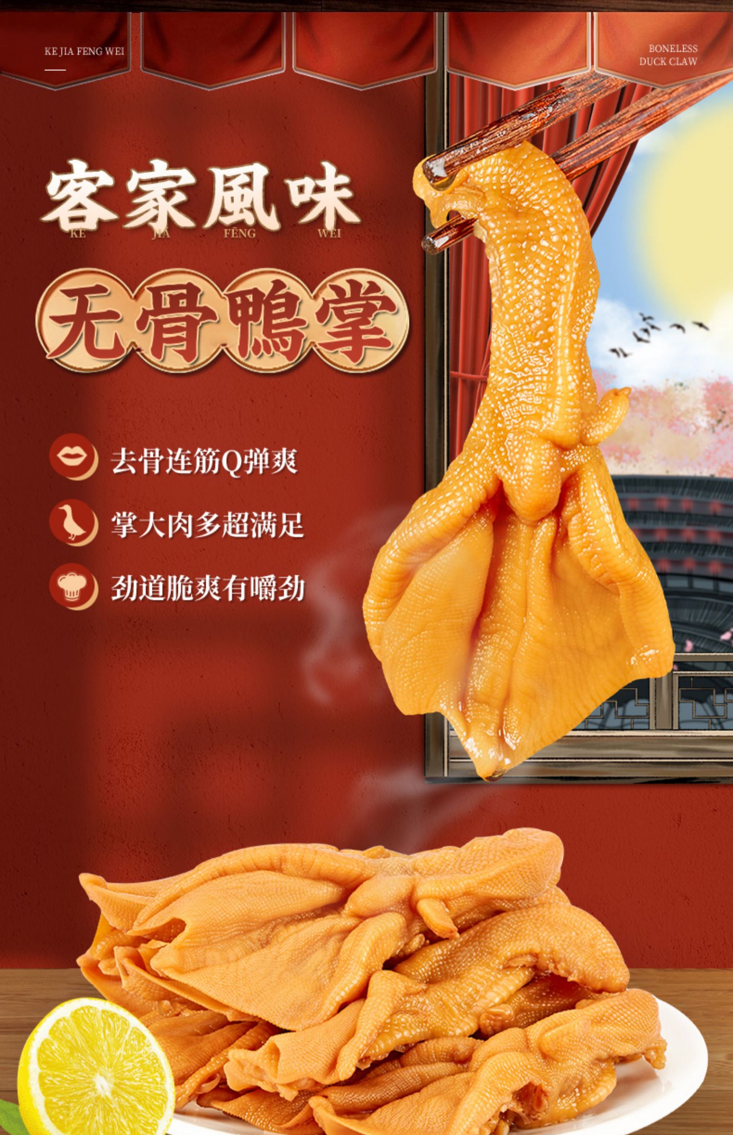 【舌尖上的美食】福建龙岩下洋泡鸭掌凤爪10个装,独立包装,净重350G,福建土楼客家风味,肉香浓郁,口感鲜嫩,舔唇咂嘴,根本停不下来!多种口味,大人小孩都能吃!超市一百块多一斤