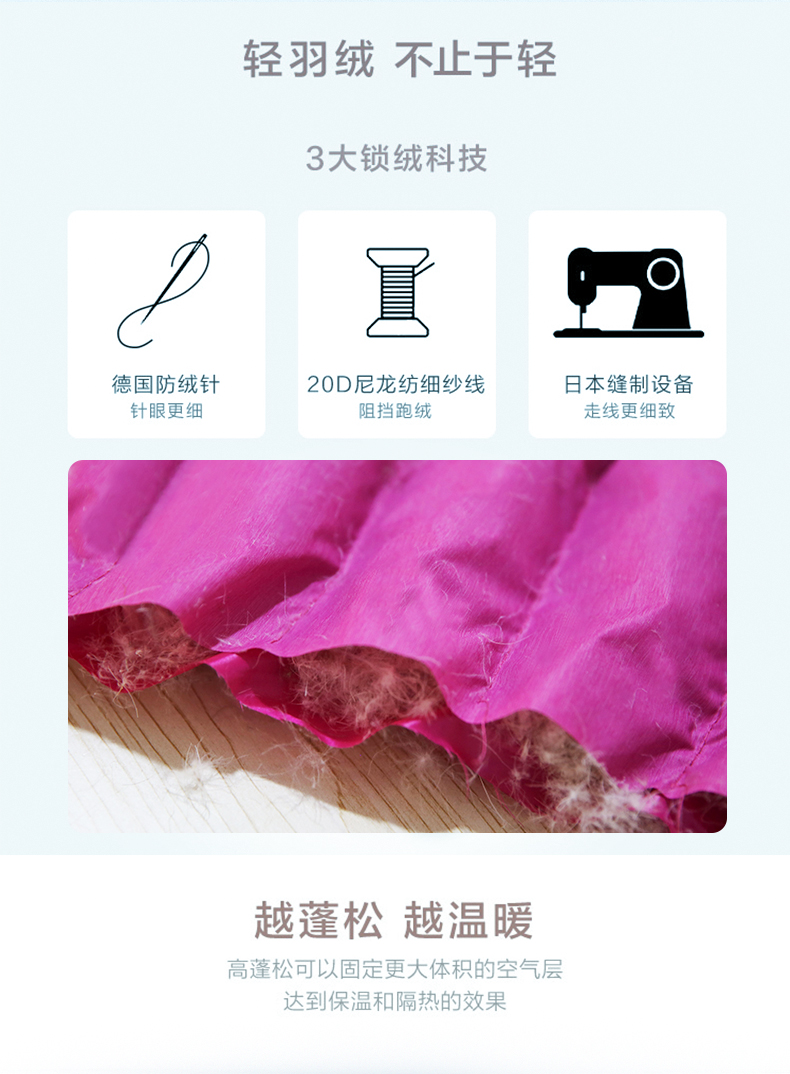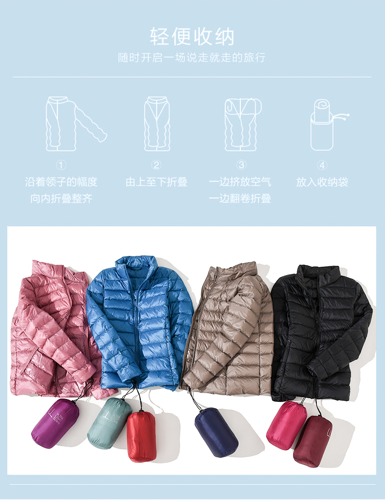 羽绒服轻薄款,面料升级蓬松保暖,德国仿绒针,日本缝制设备,20D尼龙纺细纱线阻挡跑绒,轻便收纳【赠运费险】