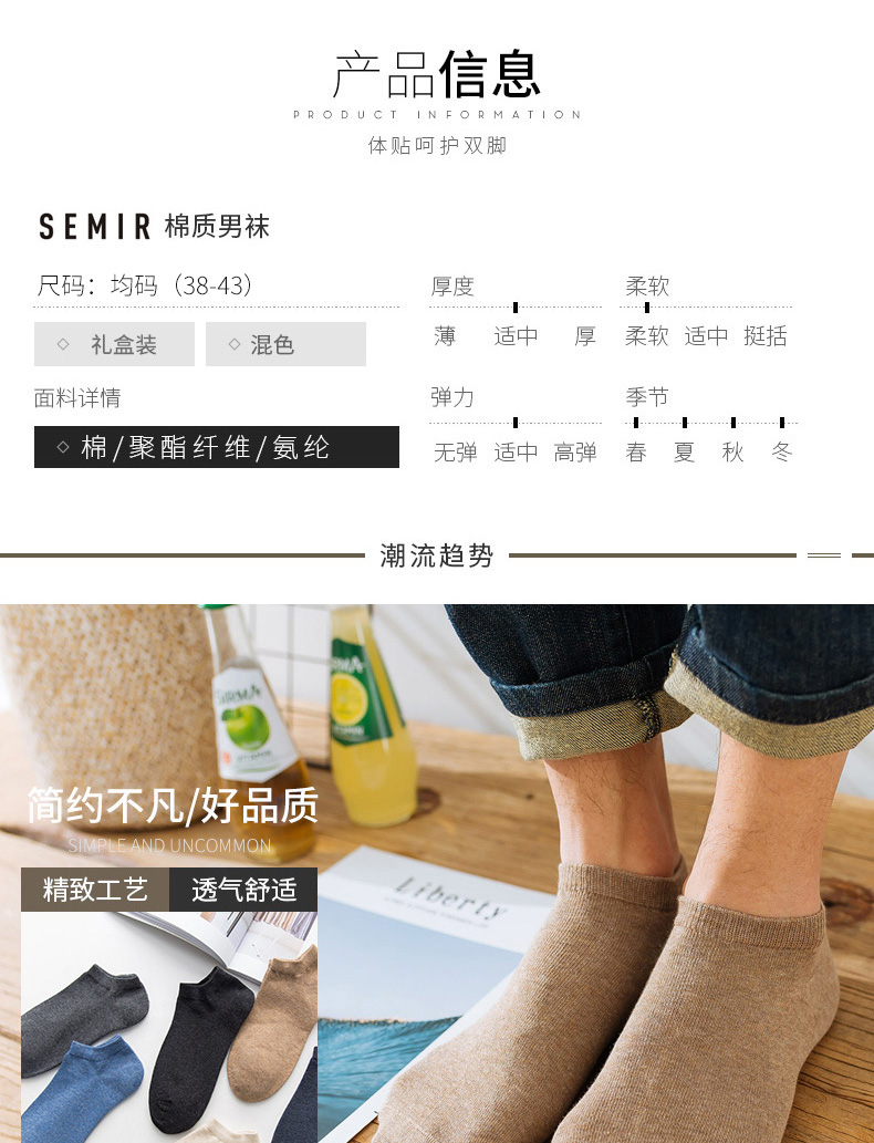 【森马品牌,超值5双装】火爆来袭!柔软舒适,吸湿排汗,透气清爽,高弹耐穿,舒适包裹脚部,不脱落不紧绷,为你带来良好的穿着体验。一年四季都能穿!