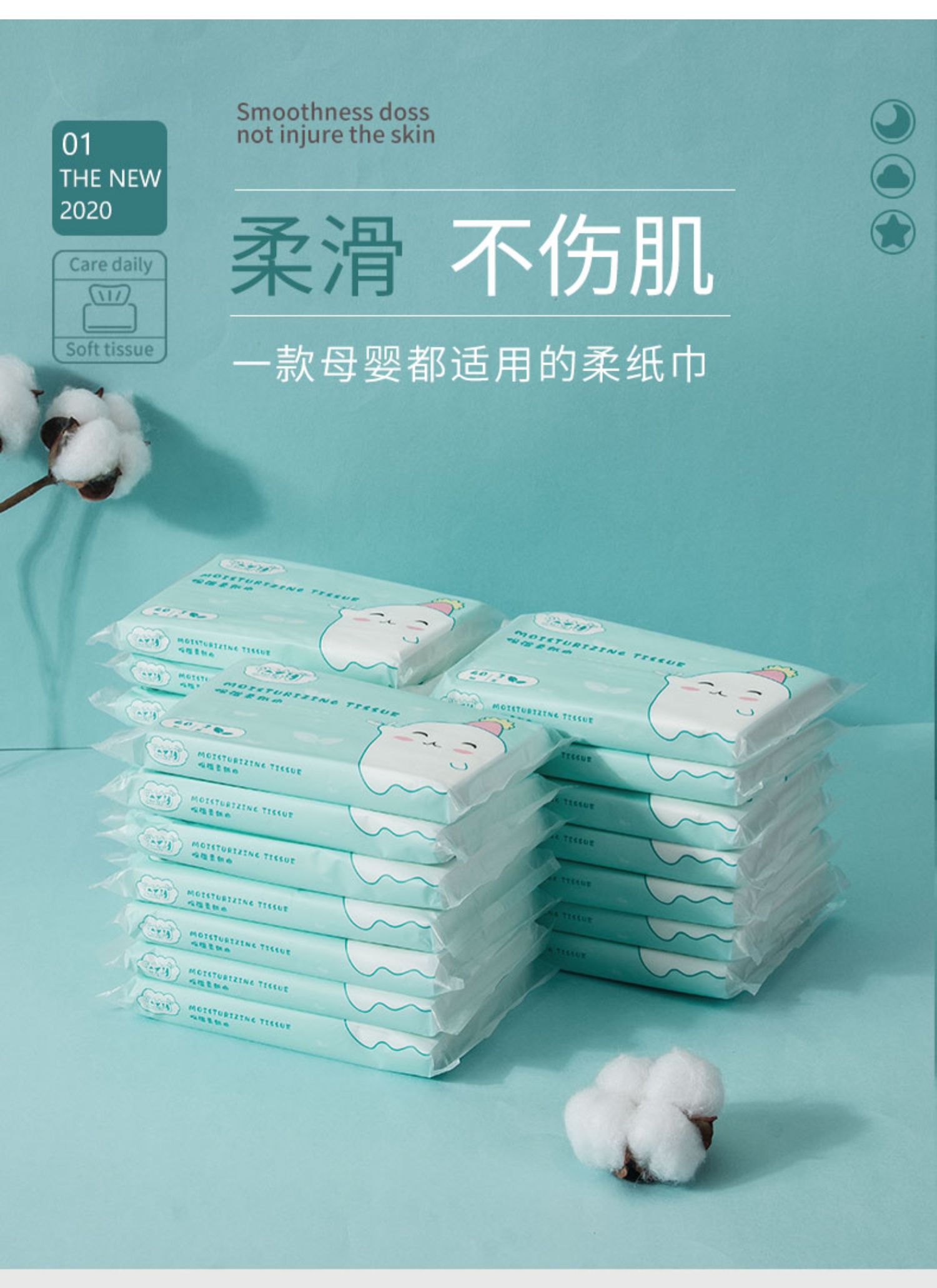 【拍1件送5包,到手10包】原生木浆,不掉纸屑,保湿因子,无添加,婴儿般亲肤触感,温和无刺激,纸质强韧,湿水不易破,柔软顺滑。