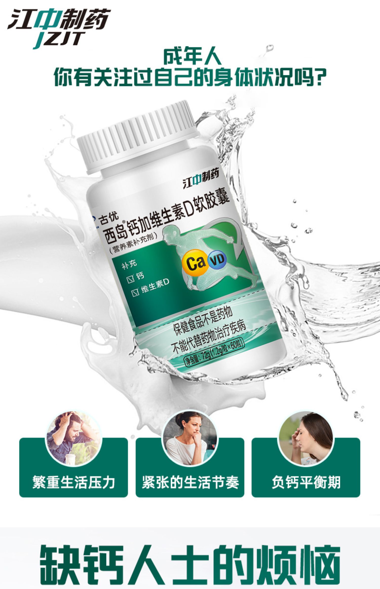 【满119元减49.9元,满179.7元减99.8元!药房一瓶69.9,现活动价仅需9.9!】蓝帽子认证,大牌江中制药!一天两粒,随餐服用,液体钙吸收快,保护骨骼增强体质,家中老年人必需品!