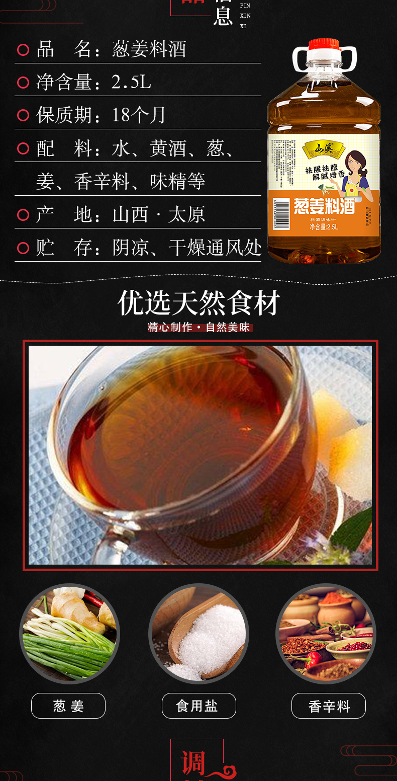 山西精制料酒,5斤装,超大一瓶、怎么用都不心疼~去腥解膻、提鲜调味✅做什么菜都香,厨房小白也能做出美味!【限时抢购价!】