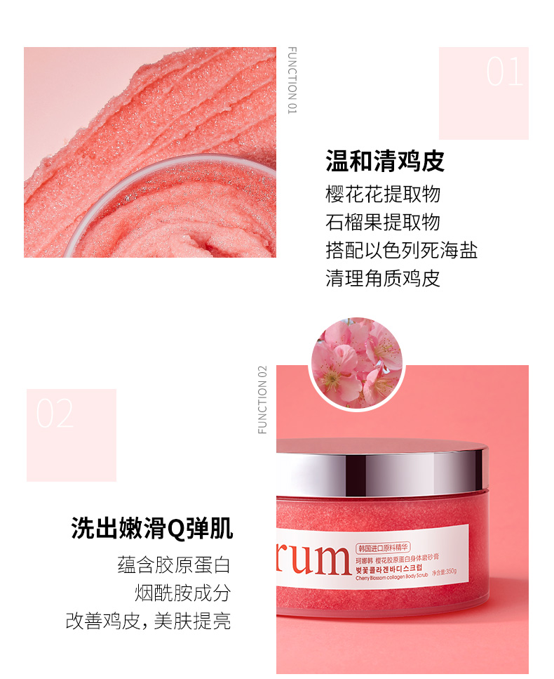 珂娜韩烟酰胺葡萄籽樱花身体磨砂膏,有去鸡皮肤,全身疙瘩,毛囊角质使皮肤嫩白,50ml*2券后9.9元!