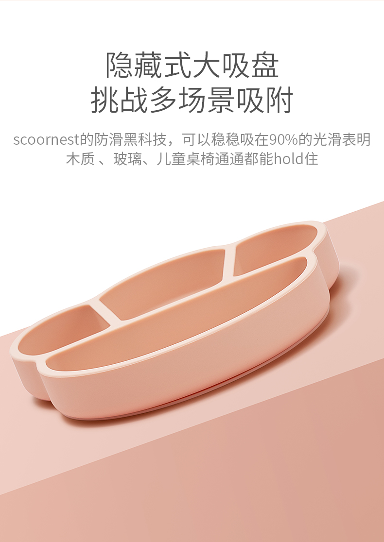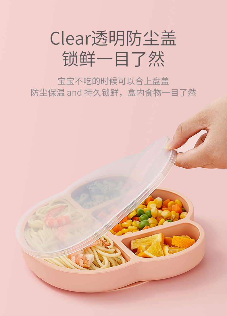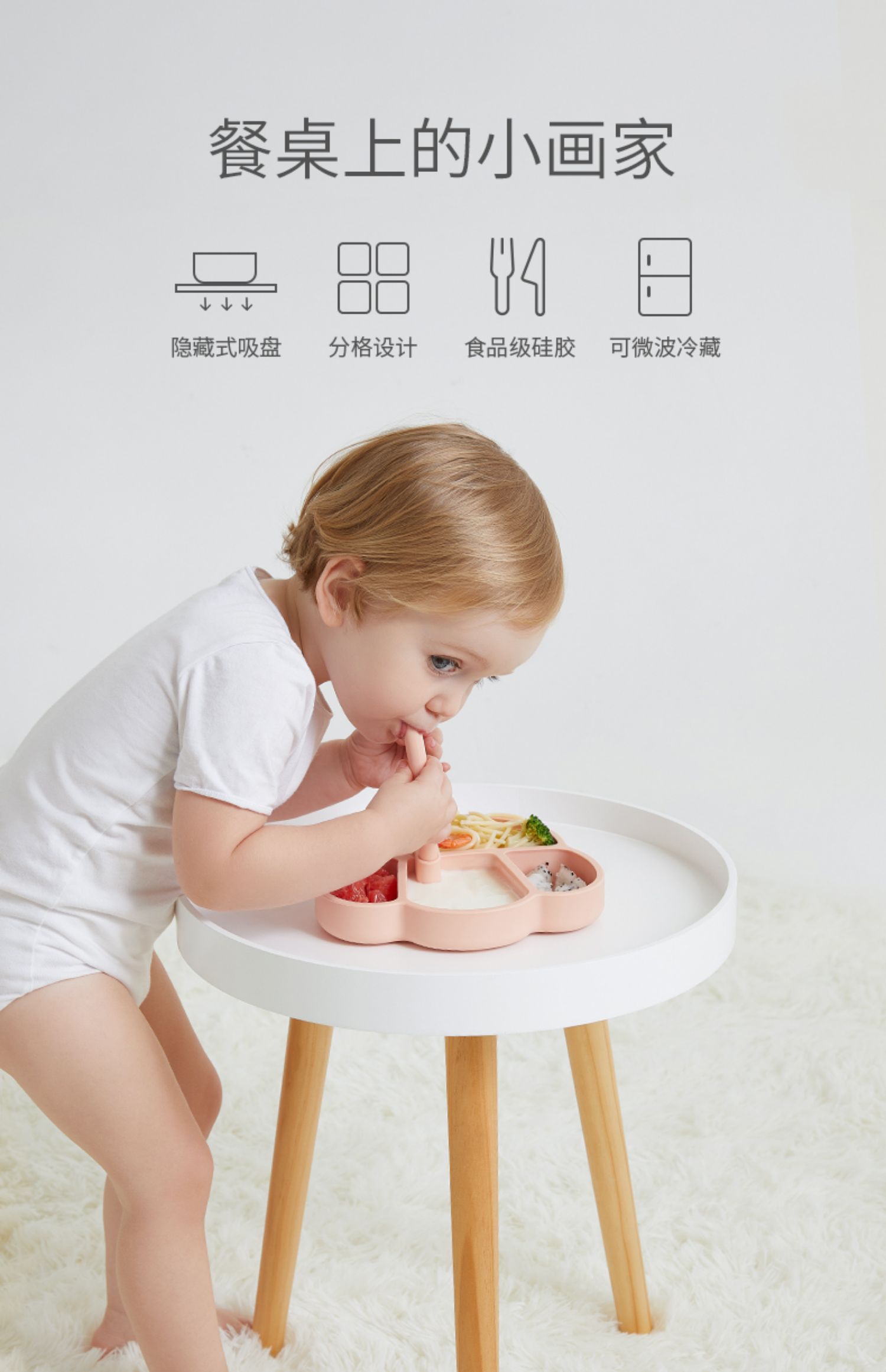多色可选【大牌品质-万千宝妈的选择】【医用铂金级硅胶,我们没味道】儿童分格卡通餐盘,宝宝训练吸盘碗,一体成型,强力吸附,打不翻,摔不烂!可以蒸汽、紫外、微波消毒。可冷藏冷冻!