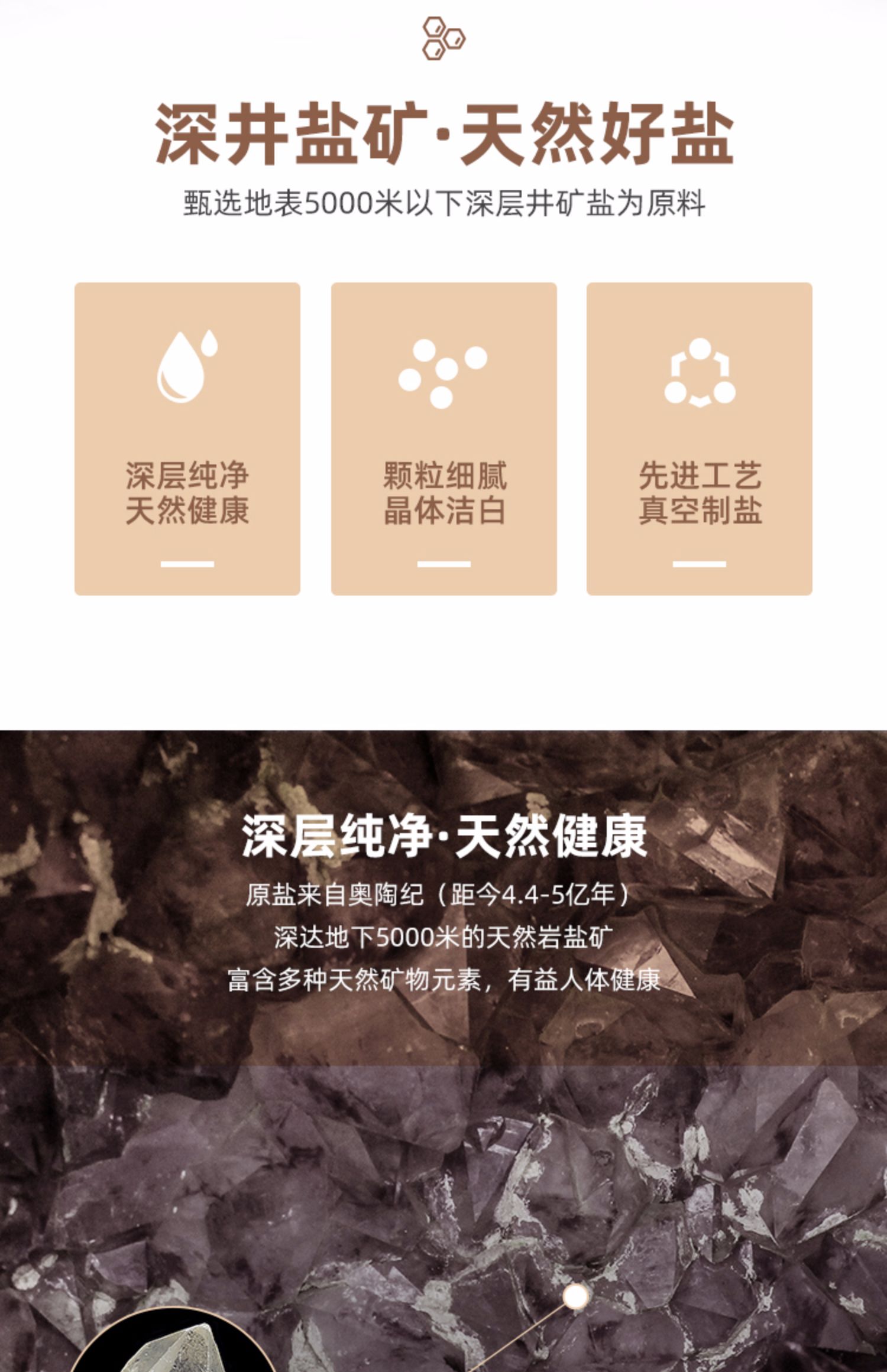 【赠运费险】来自5千米深层的天然纯净盐,先进工艺真空制盐,颗粒细腻,晶体洁白,烹饪调味,轻松溶解,恰到好处的咸香,不厚重,不过咸,富含多种天然矿物元素,有益人体健康!