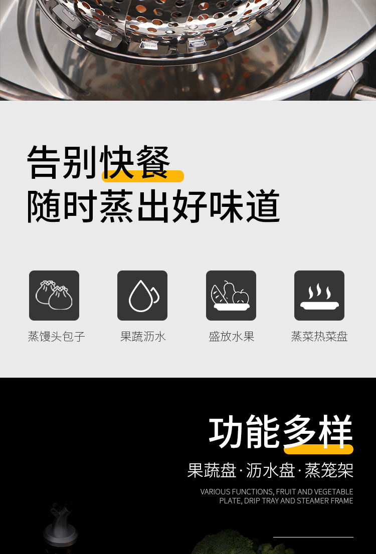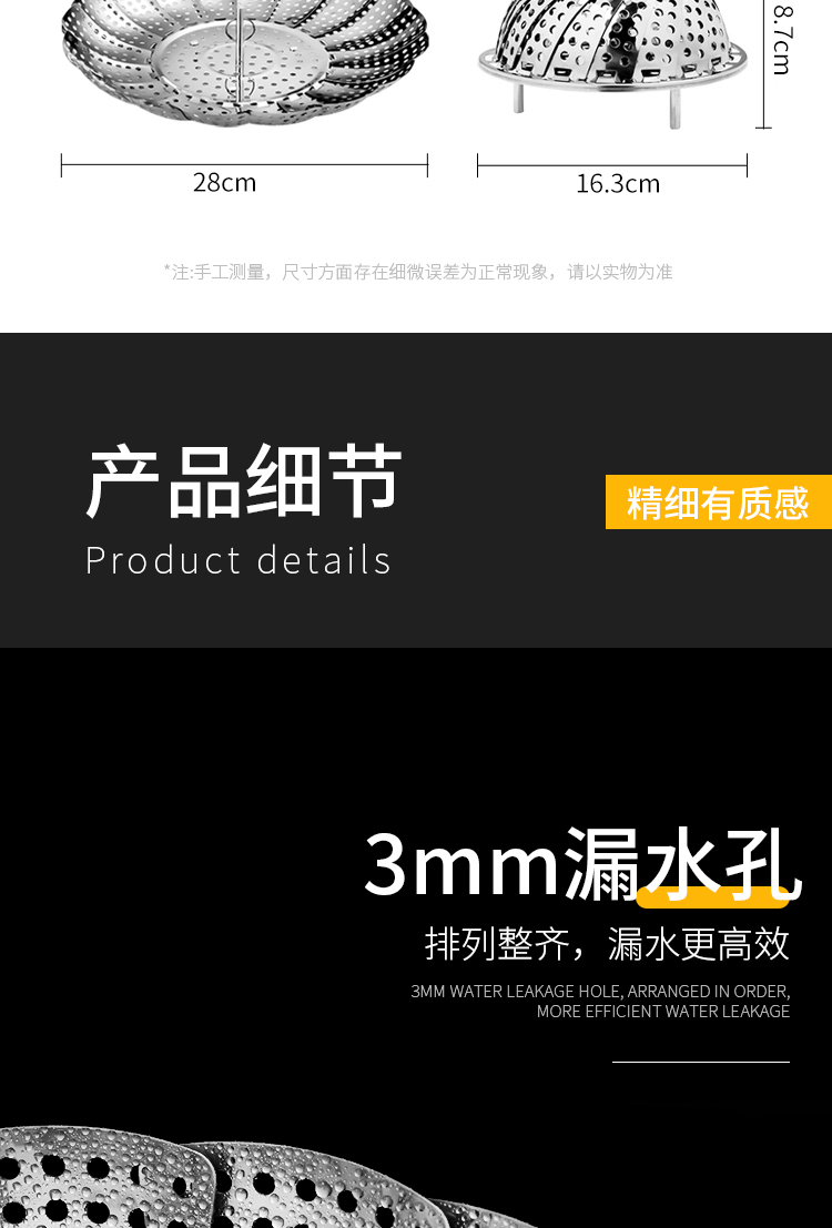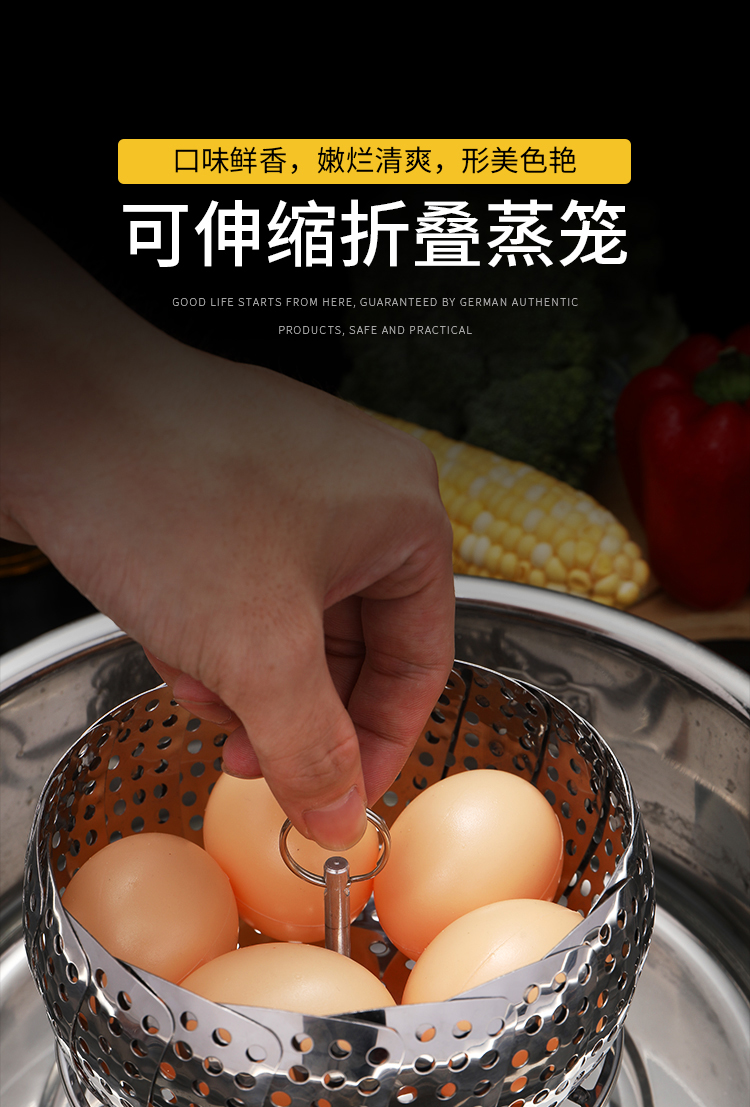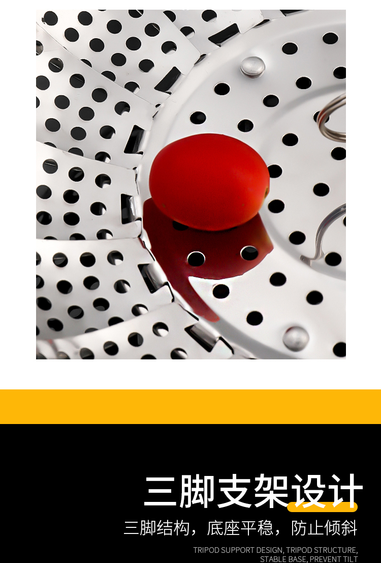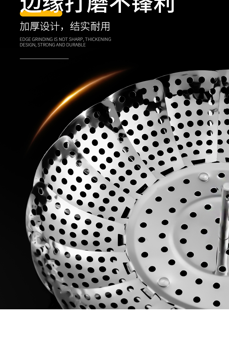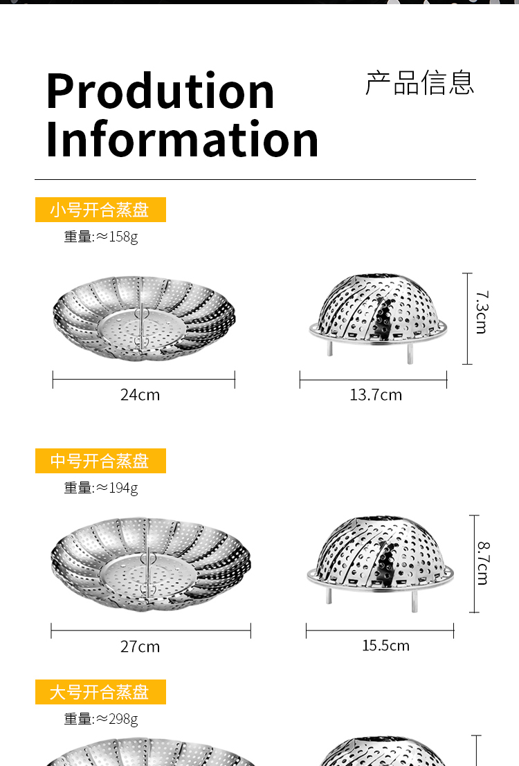 百变折叠,可叠加使用,承重力度强,加厚不绣钢,蒸孔均匀,可拆脚架,用途广泛,不锈钢家用伸缩蒸笼盘,可用作水果篮,沥水篮,蒸架,筛网等等,让你做菜时候便捷清洗,是你厨房的好帮手哦~