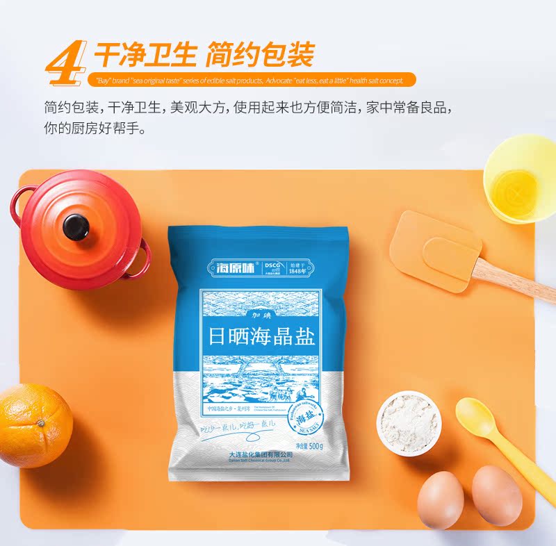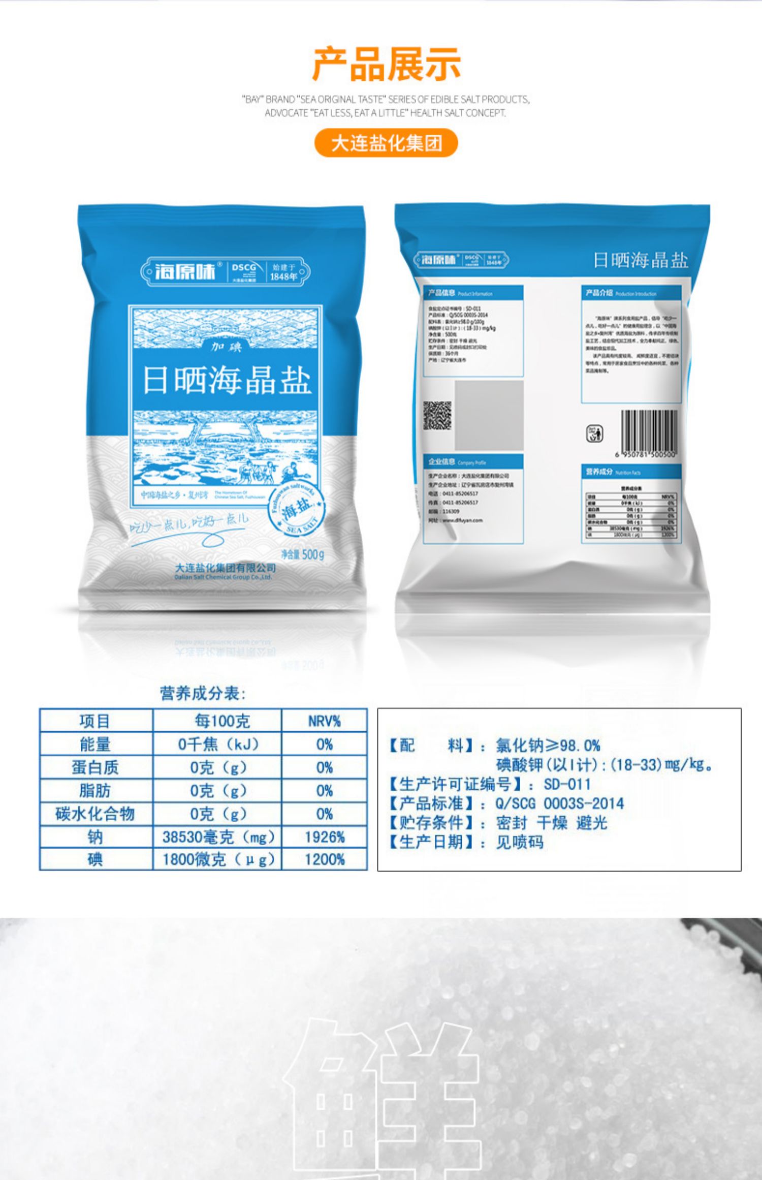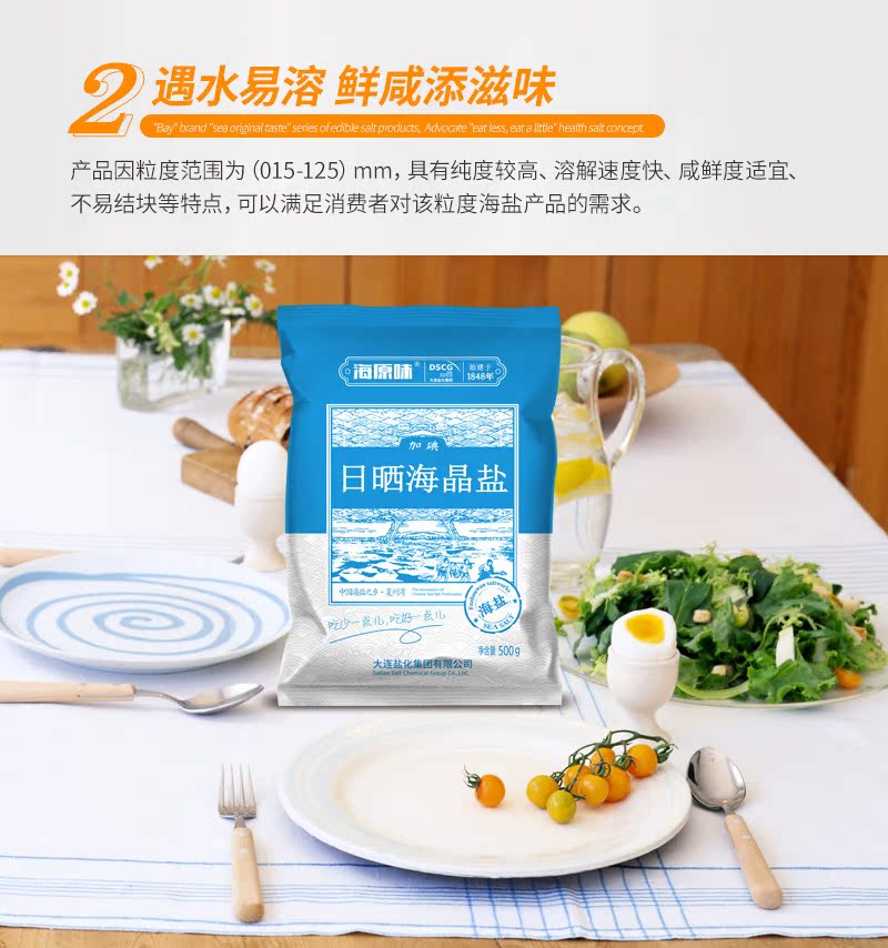 【500g*5袋】百年国企品质海盐,天然海盐,口感鲜美,咸鲜度适宜,纯度高,溶解快,无抗结剂,无亚铁氰化钾,煲汤味更鲜!