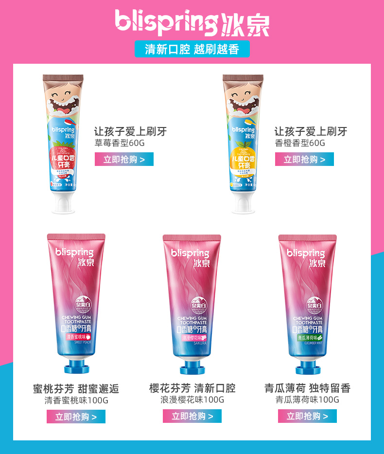 券后【34.8】包邮秒杀!【两件5折】【辣妈辣么美】节目同款,累计热销1000000+,特别的成分给幼齿多一份照顾,添加食品级益生菌,平衡菌群,木糖醇无氟配方妈妈更安心,草莓味果香,让您的孩子爱上刷牙