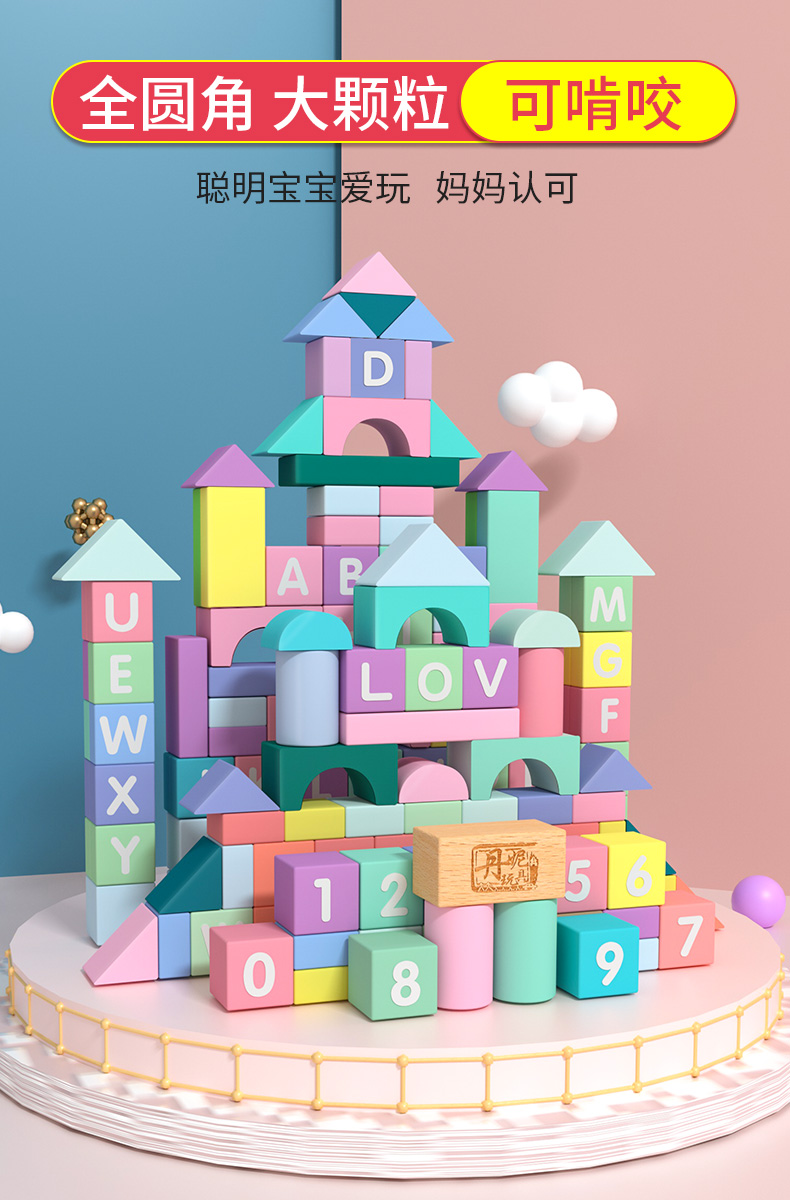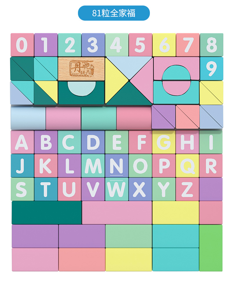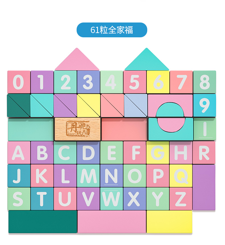 【丹妮奇特】教木玩知名品牌,进口榉木,全圆角细心打磨不伤肤,0甲醛可啃咬,防吞咽设计,全方位安全保护。中英文数字多类型积木,发挥宝宝想象力,爱玩爱学习~