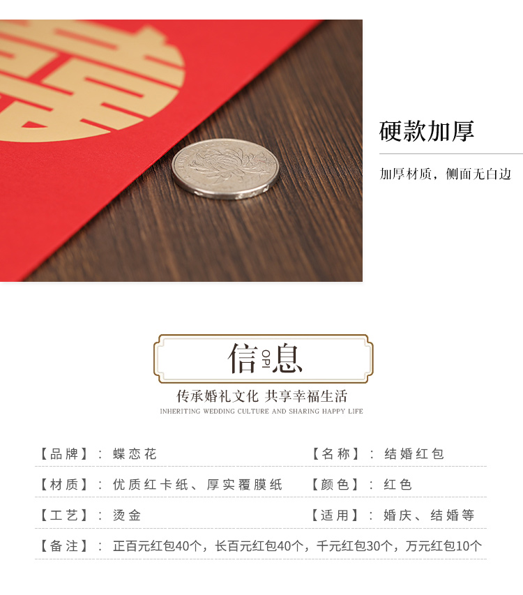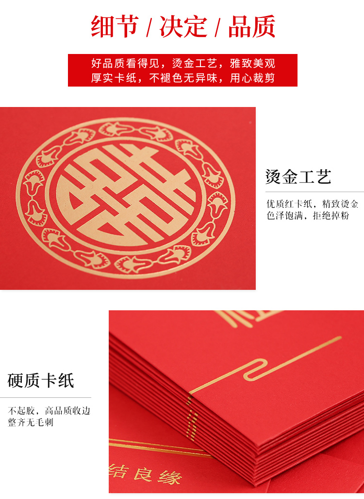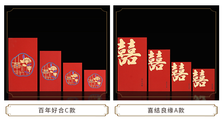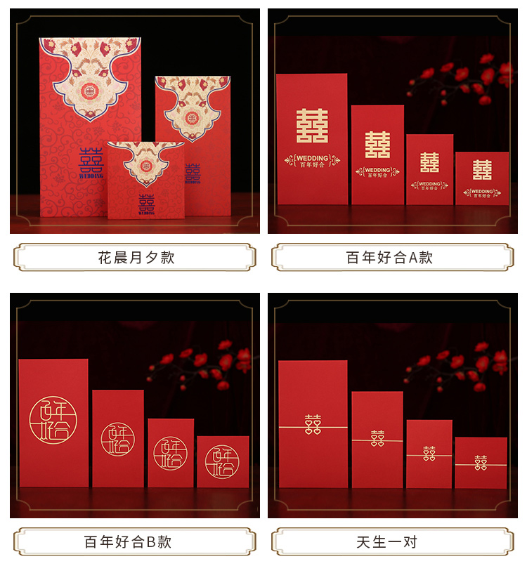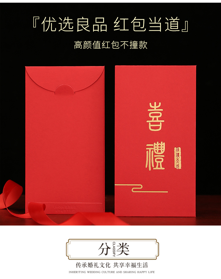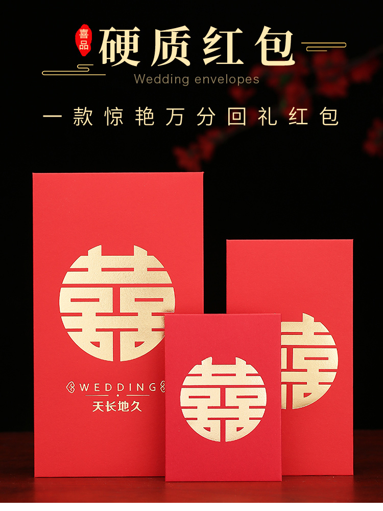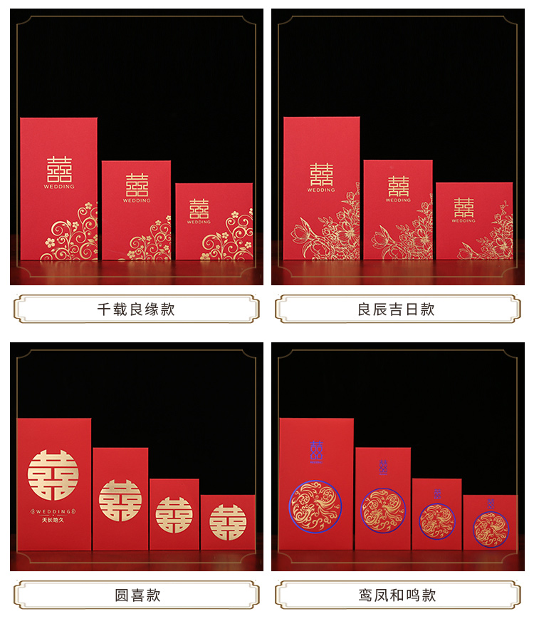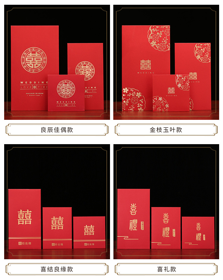 个性创意中国风结婚红包,多种规格可选,烫金工艺,厚实硬纸卡纸,有分量才有档次,高颜值保你不会撞款