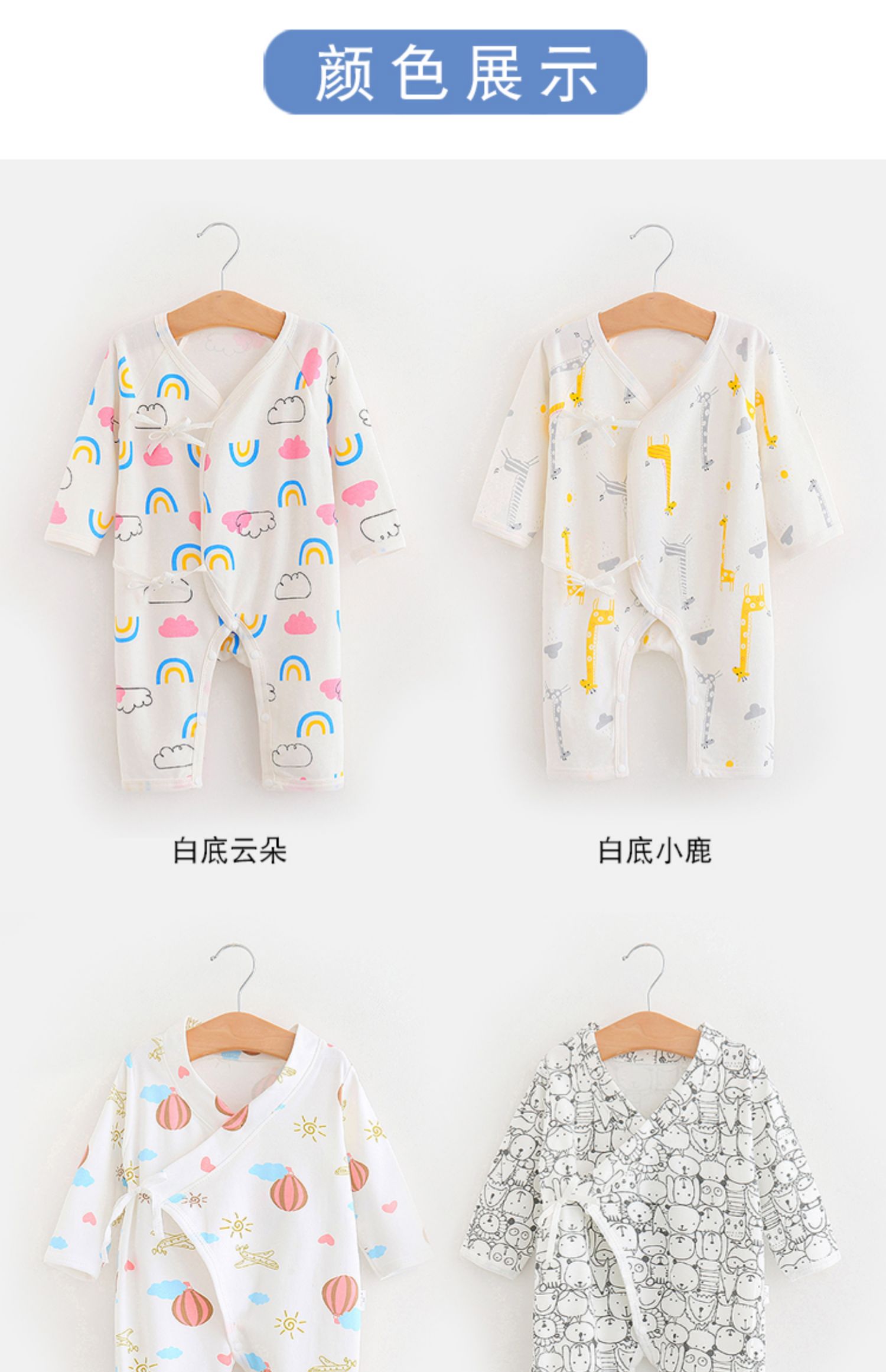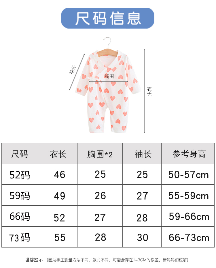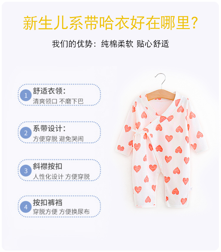 纯棉软绵舒适亲肤面料,妈妈放心,宝宝舒心!新生婴儿爬服,连体衣方便好穿,牛奶般丝滑触感呵护宝宝娇嫩肌肤,一年四季都可以穿,广大妈妈的选择!!