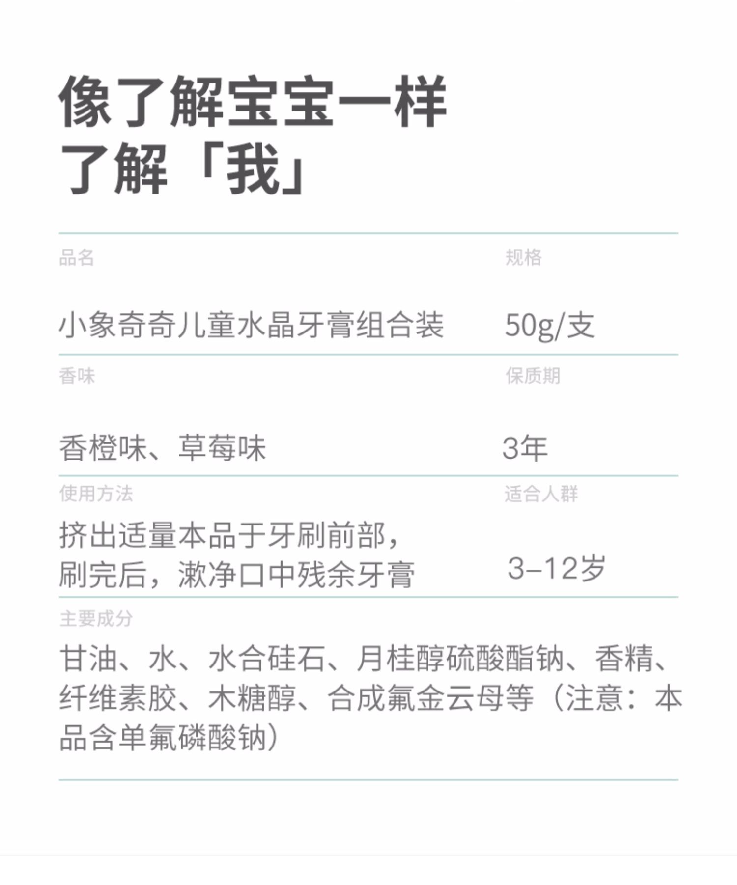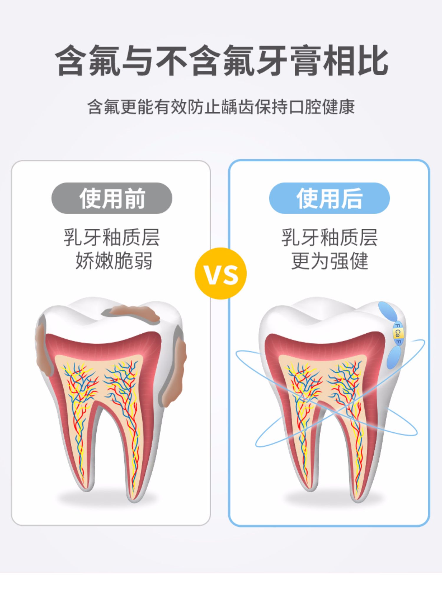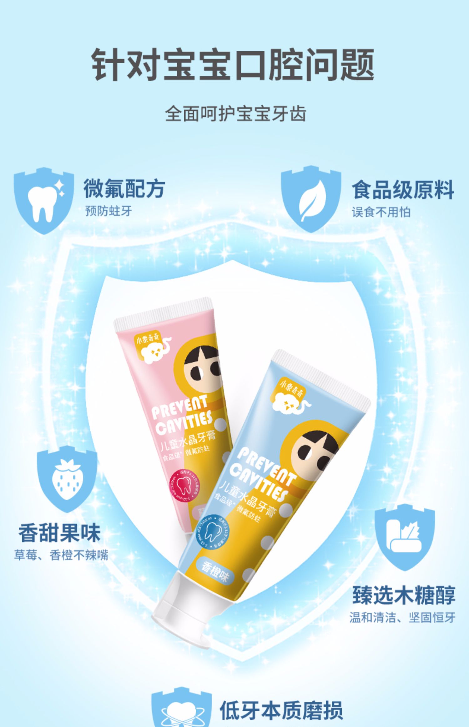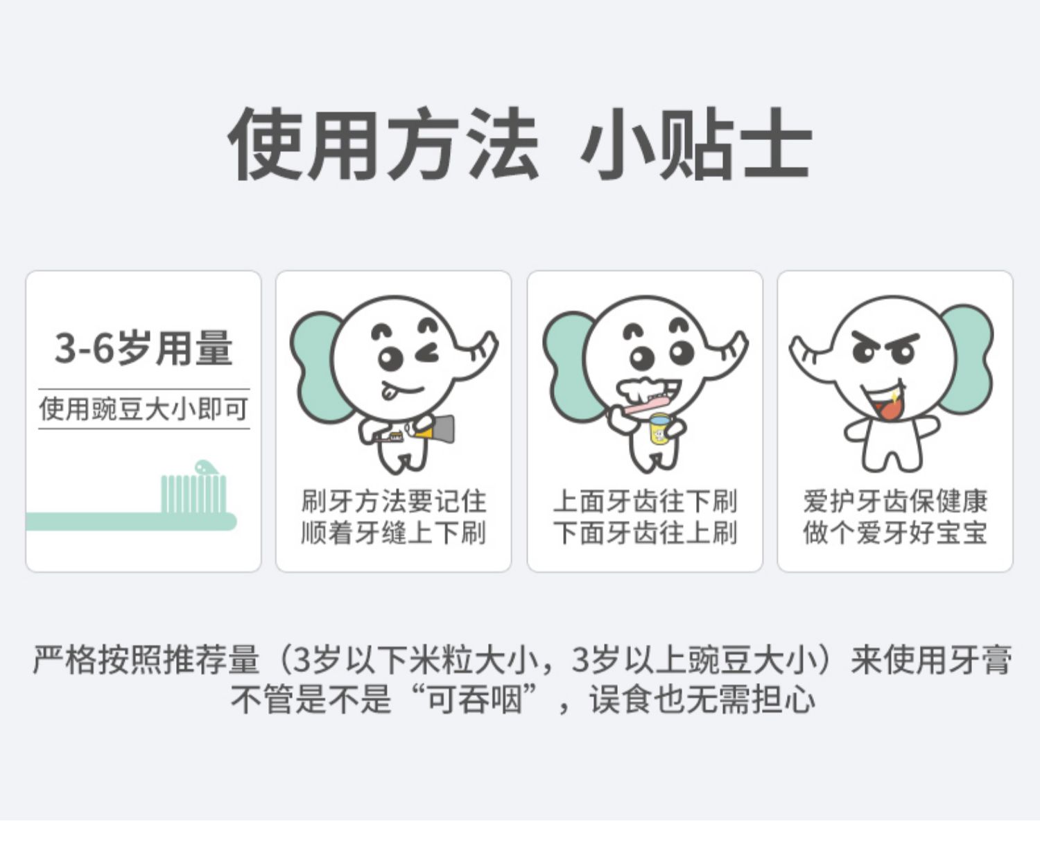 清新水果味微氟防蛀3-12岁儿童专用牙膏,食品级材料,误食不用怕,甄选木糖醇,温和清洁,坚固恒牙,宝宝小萌牙,妈妈大难题,守护,让我们从乳牙开始吧。