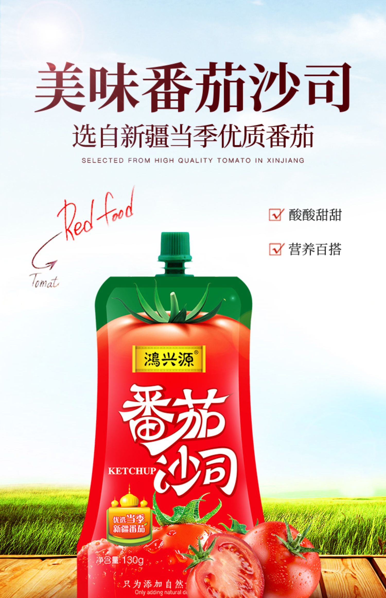番茄酱沙司130g*3袋,选自新疆当季优质番茄,浓稠细腻,挤压设计,方便卫生。酸酸甜甜,营养百搭酱料,可搭配众多食材,创造出无数美味,家中必备!【赠运费险】