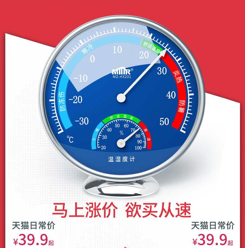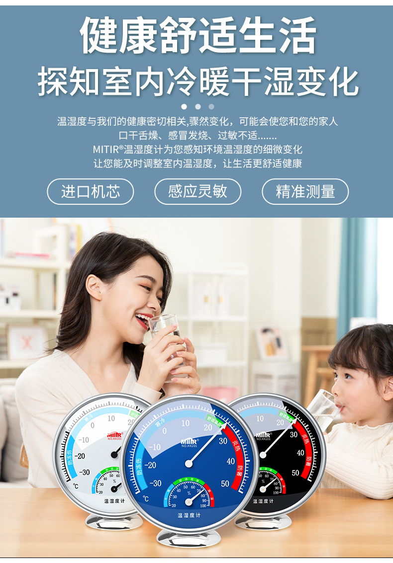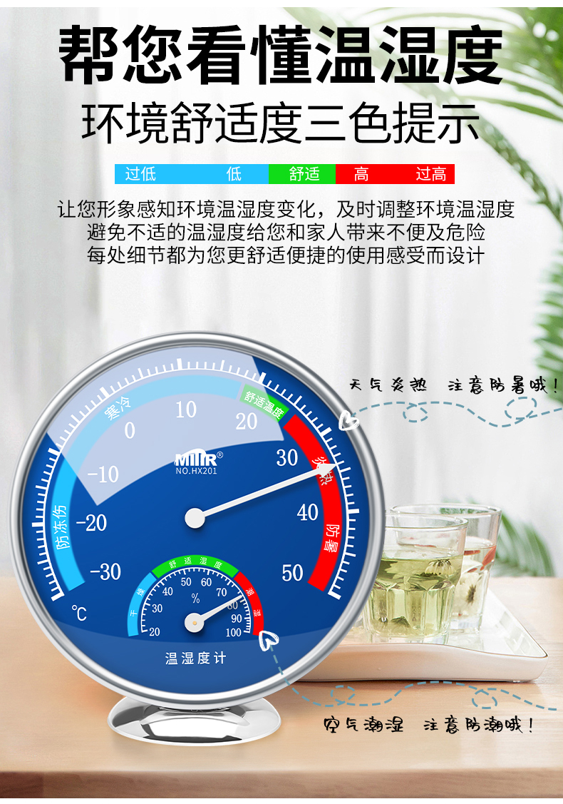 【无需电池,耐用十年】MITIR高精度温湿度计,物理感应,精准进口机芯,铝制环保外壳,舒适度提醒,灵敏度高,可坐可挂,小身材大用途,多色可选,适合家用、医用、仓库等多场景【赠送运费险】