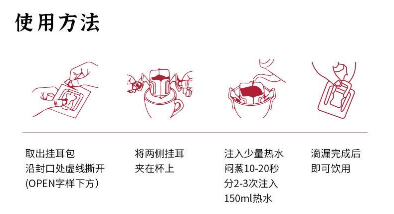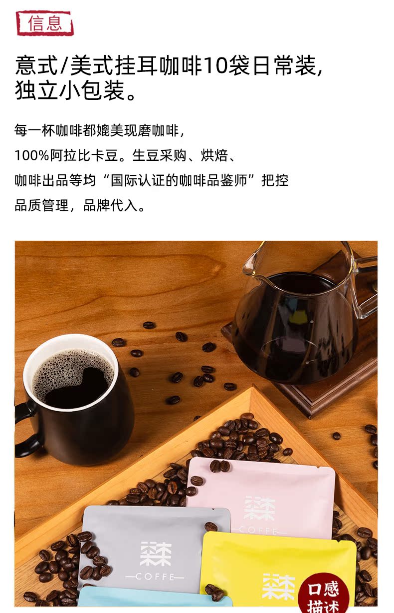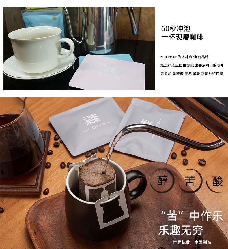 挂耳咖啡专为手冲设计,方便快捷冲泡咖啡。精选咖啡豆研磨,还原咖啡原香,香味醇厚,回味甘甜,带有淡淡果香