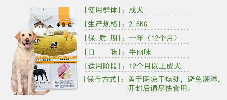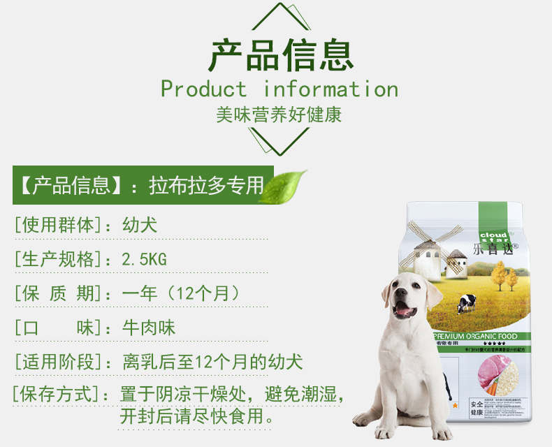 乐喜达拉布拉多专用狗粮,幼犬5斤,大型犬狗粮牛肉味,天然粮2.5kg,拉布拉多天然粮,不吃包退【赠运费险】