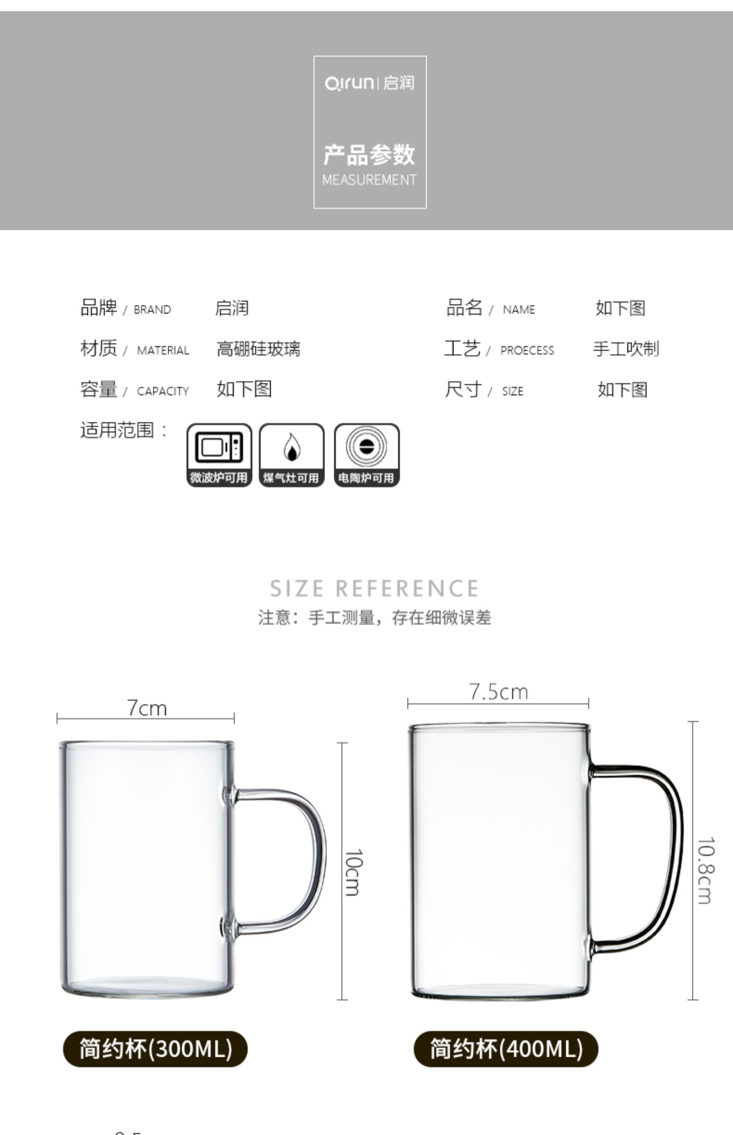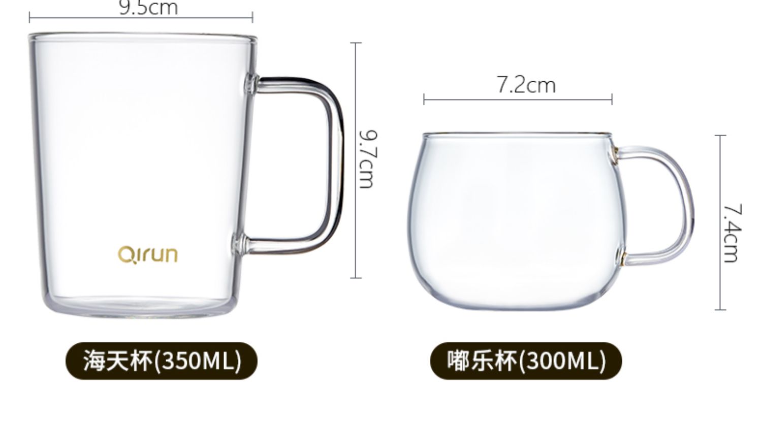 【破损补寄,300ml*4只装,送DIY家庭贴纸】采用高硼硅玻璃,耐热防爆,无铅健康,明火可烧,可放烤箱微波炉加热,升级加厚很安全!防烫把手,不惧高温~4色区分,全家人一人一个不混杯