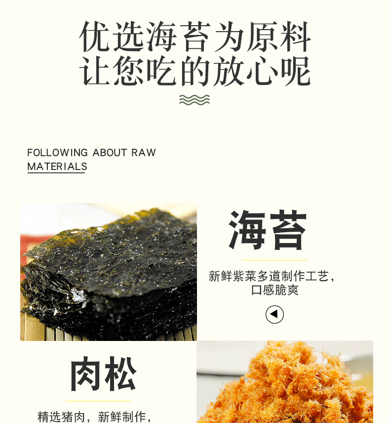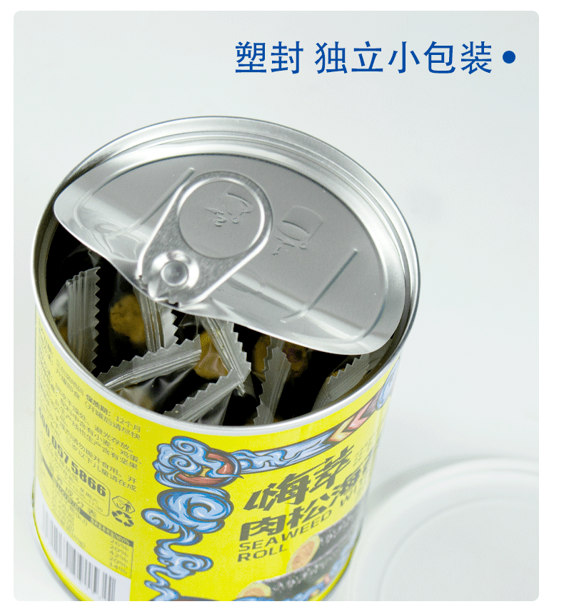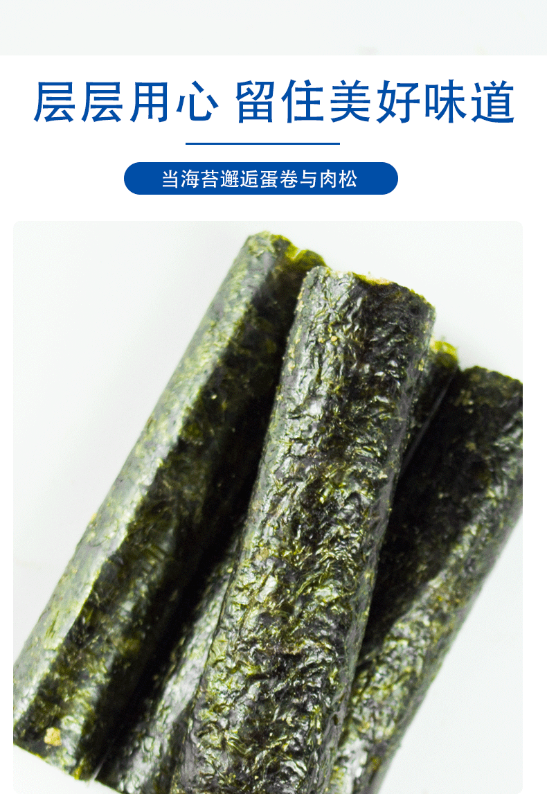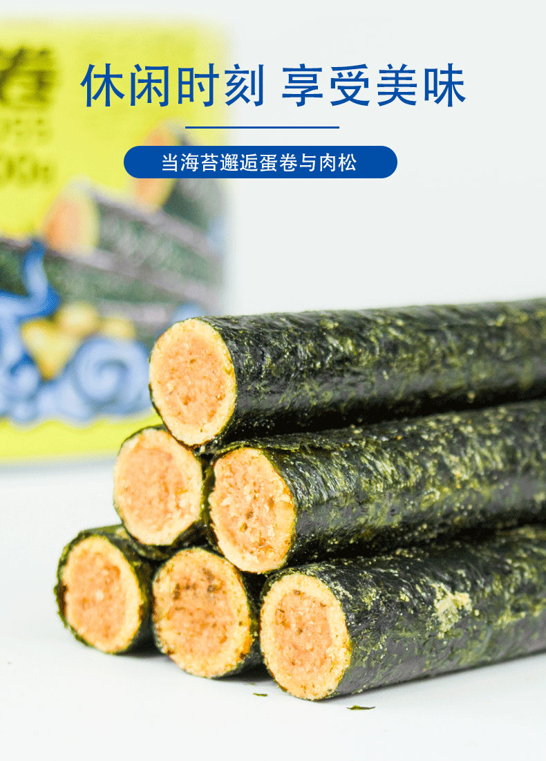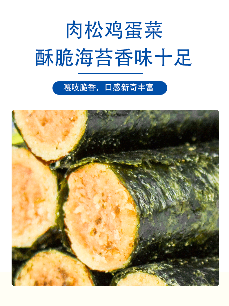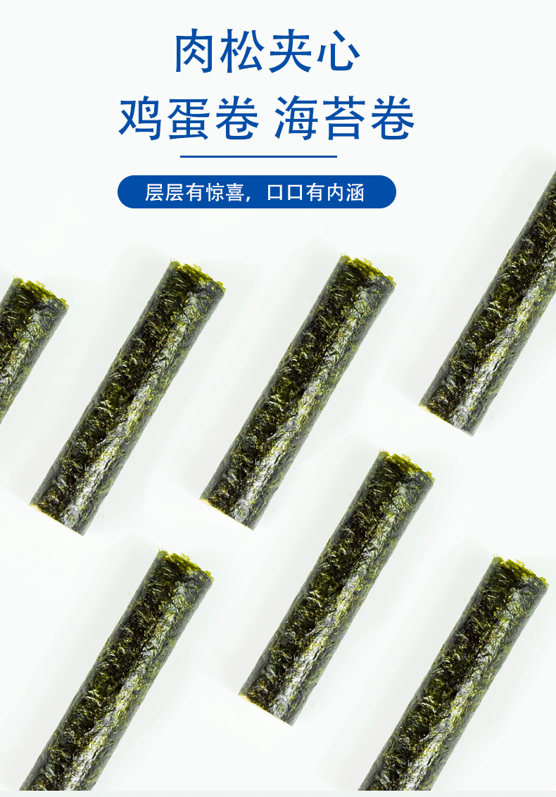 独立包装,海苔的鲜美,蛋卷的香脆,肉松的酥香,三重碰撞美味,口感很丰富~好吃到舔手指!