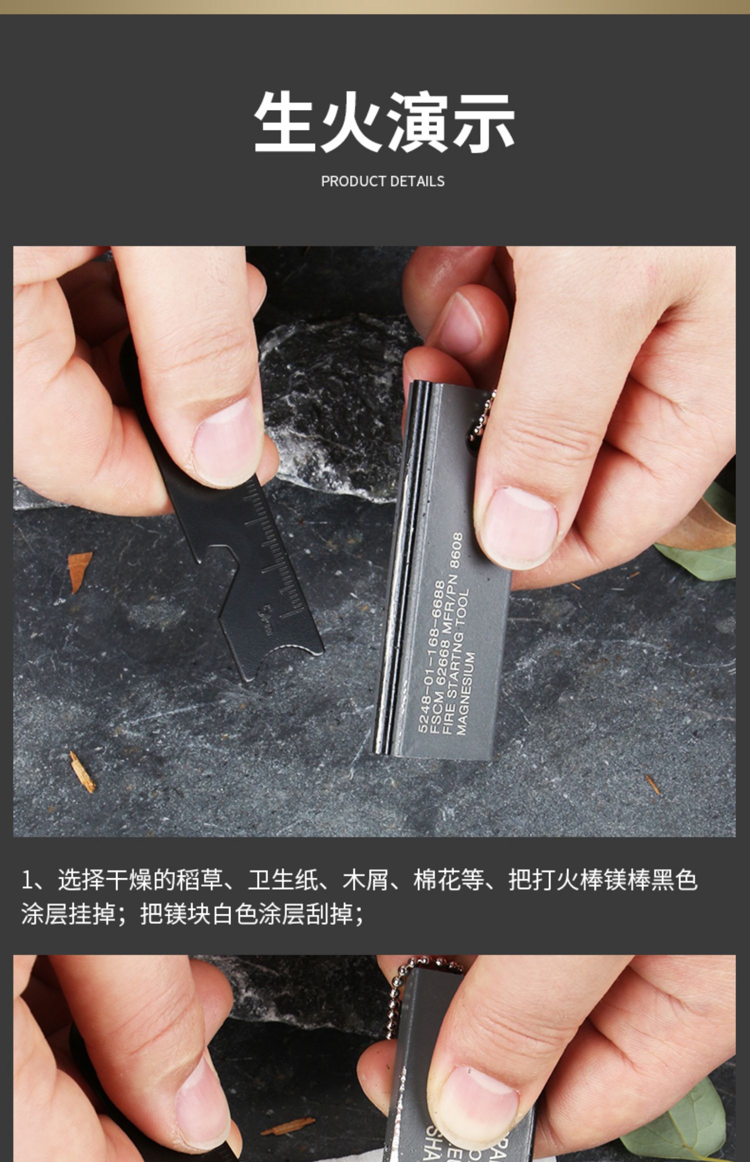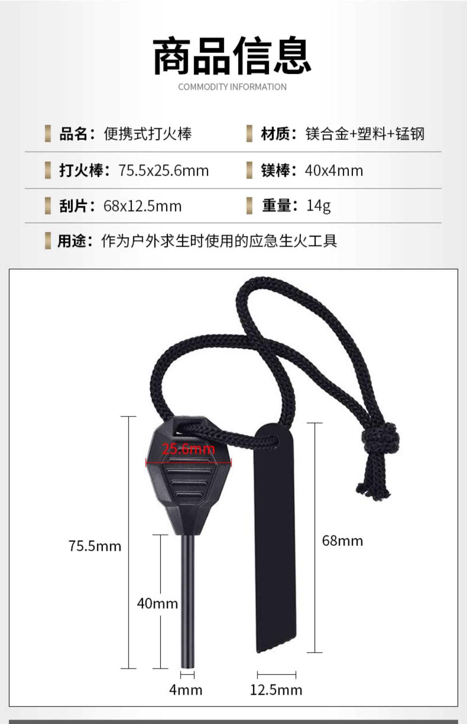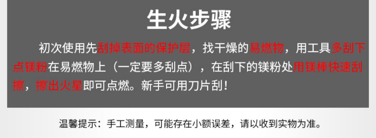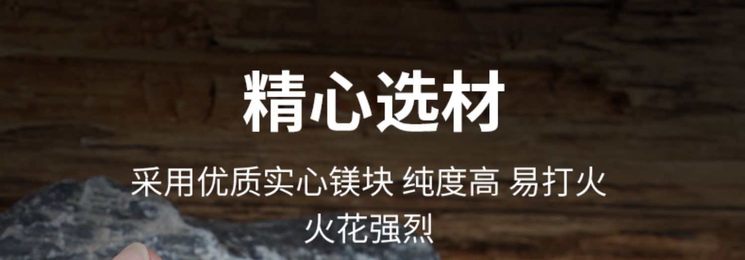 想要玩一次户外打火?体验原始生活,野外取火露营必备装备,终于搞活动啦,纯镁棒打火石,送刮片加绳子,纯度高,火花大,让你感受自己生火做饭的乐趣!