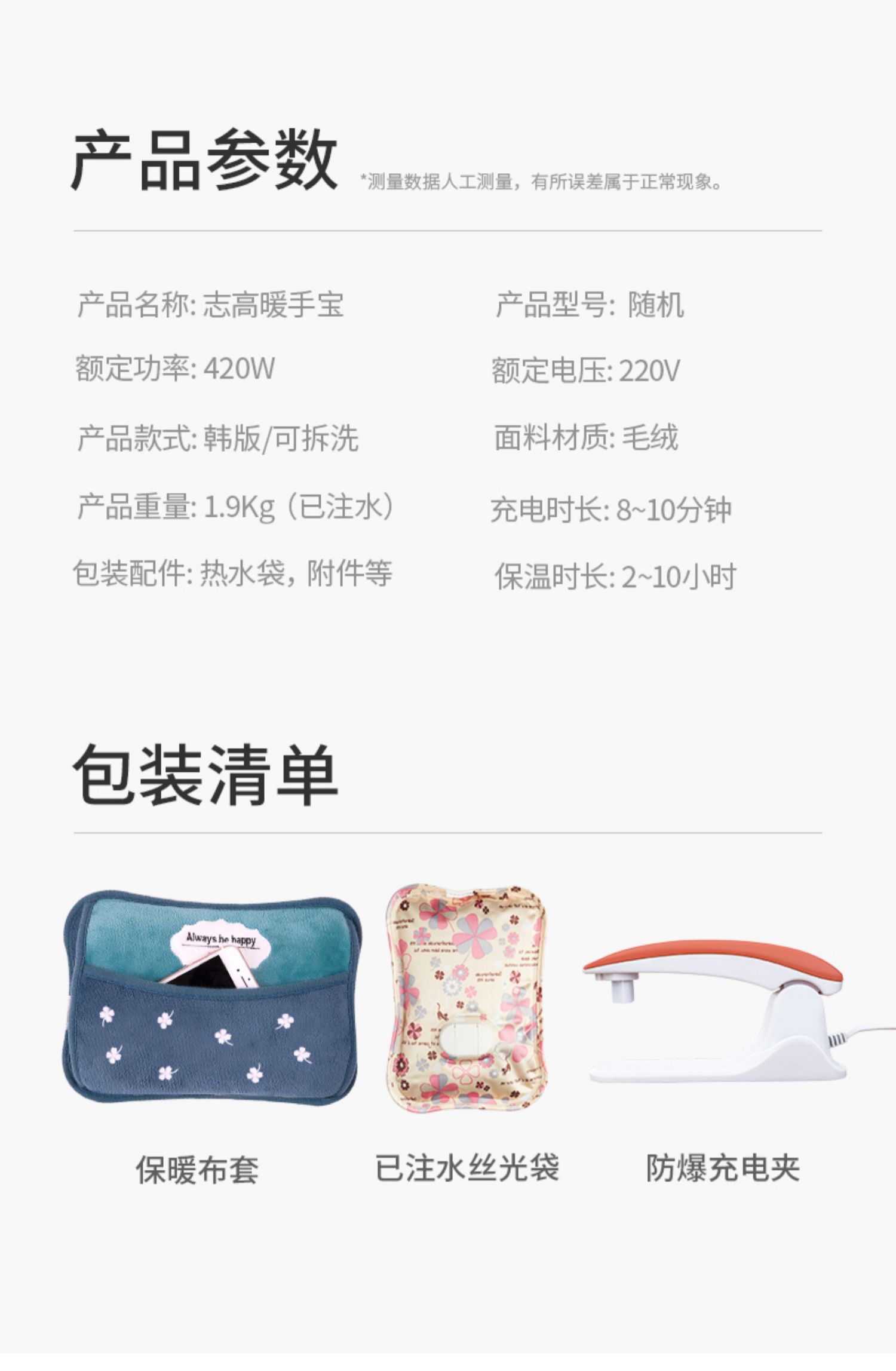 热水袋!一定要大牌!自动断电!优质不锈钢发热管结构,防渗漏材质保护,抢回家正用得上,防爆防漏~更实用!充电10分钟,温暖一整夜【赠运费险】
