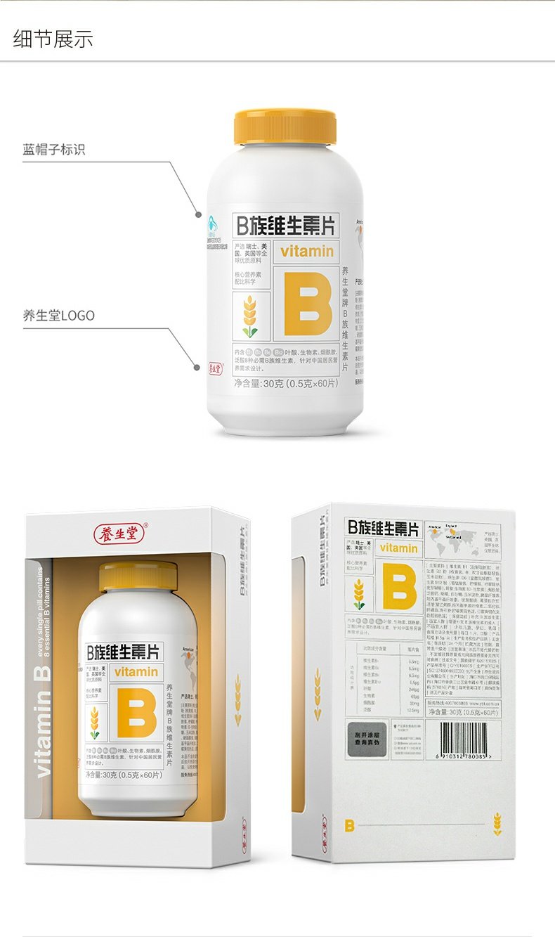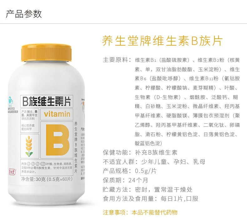 【正品保证】熬夜加班喝酒?养生堂B族维生素片!补充8种B族维生素,每天吃一粒,排毒养颜,抗衰老,加速新陈代谢!加班熬夜必备哦~【赠运费险】