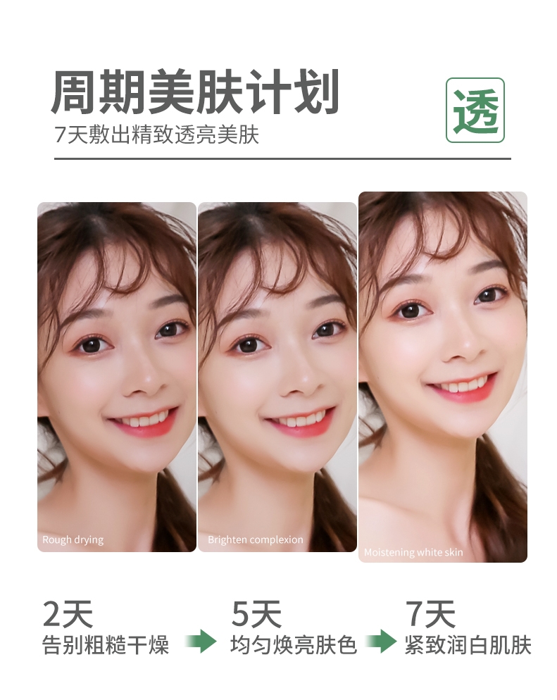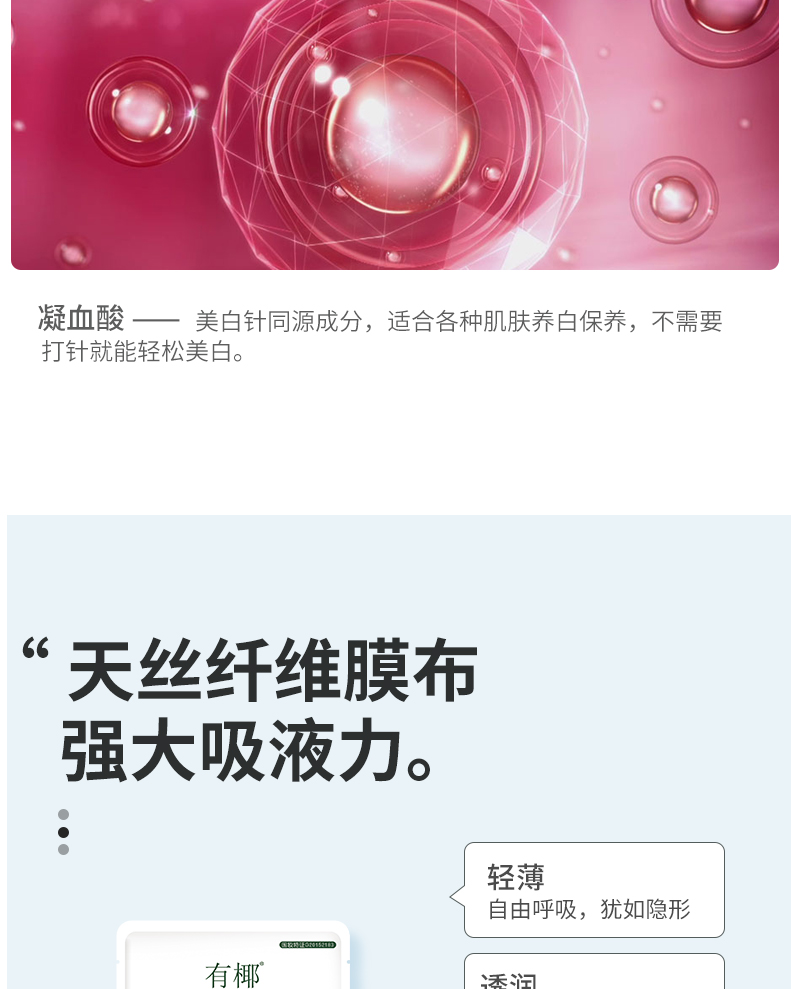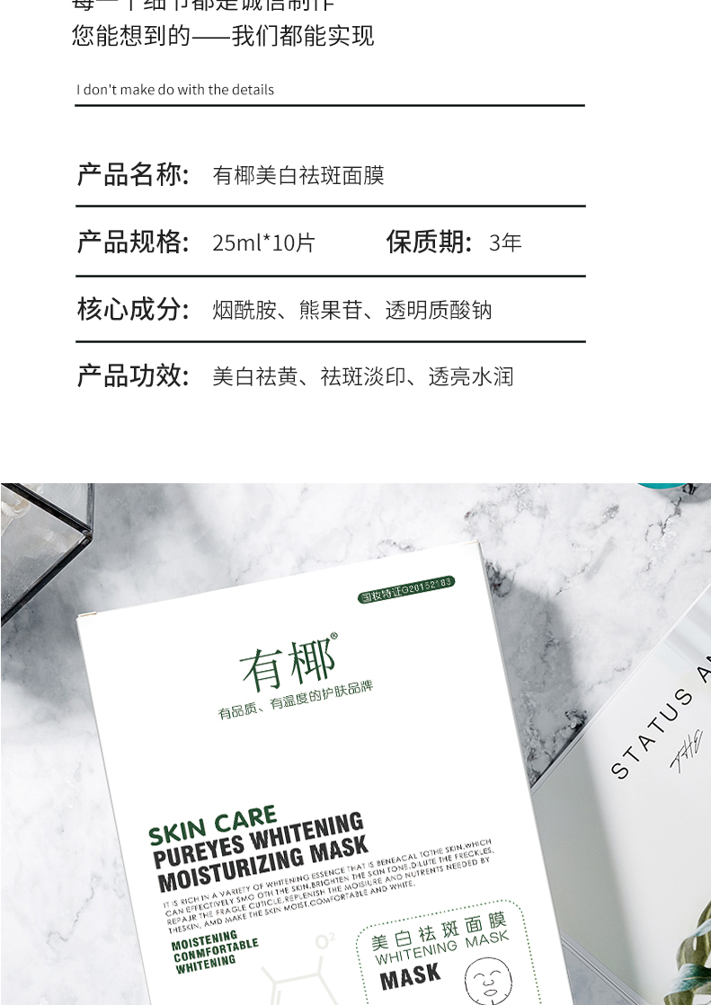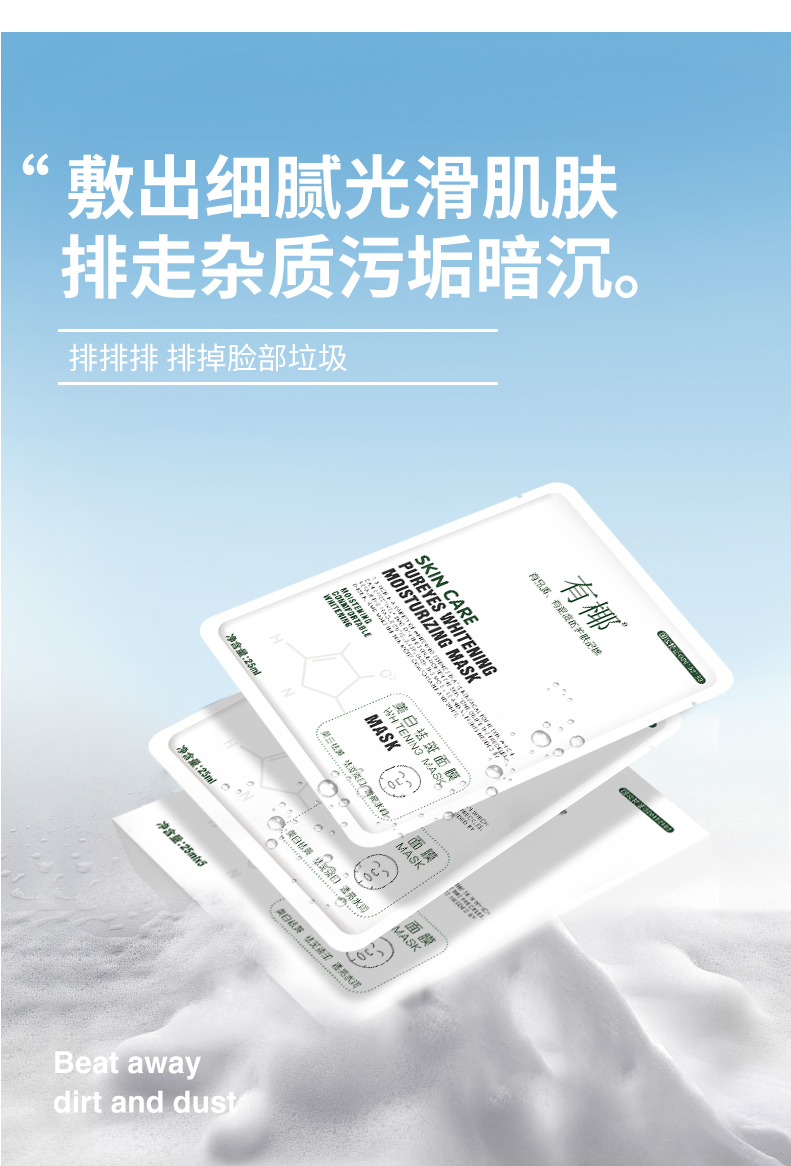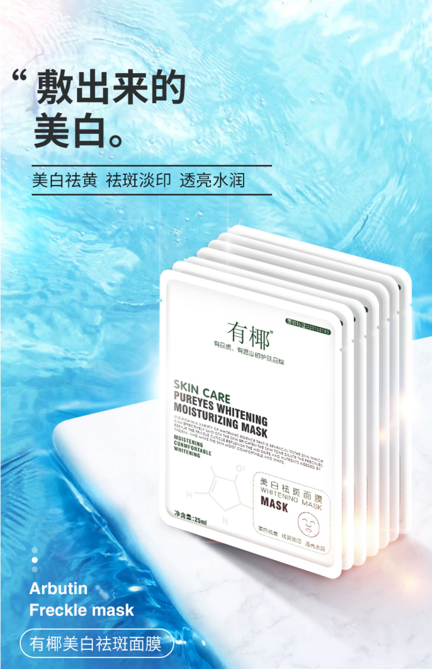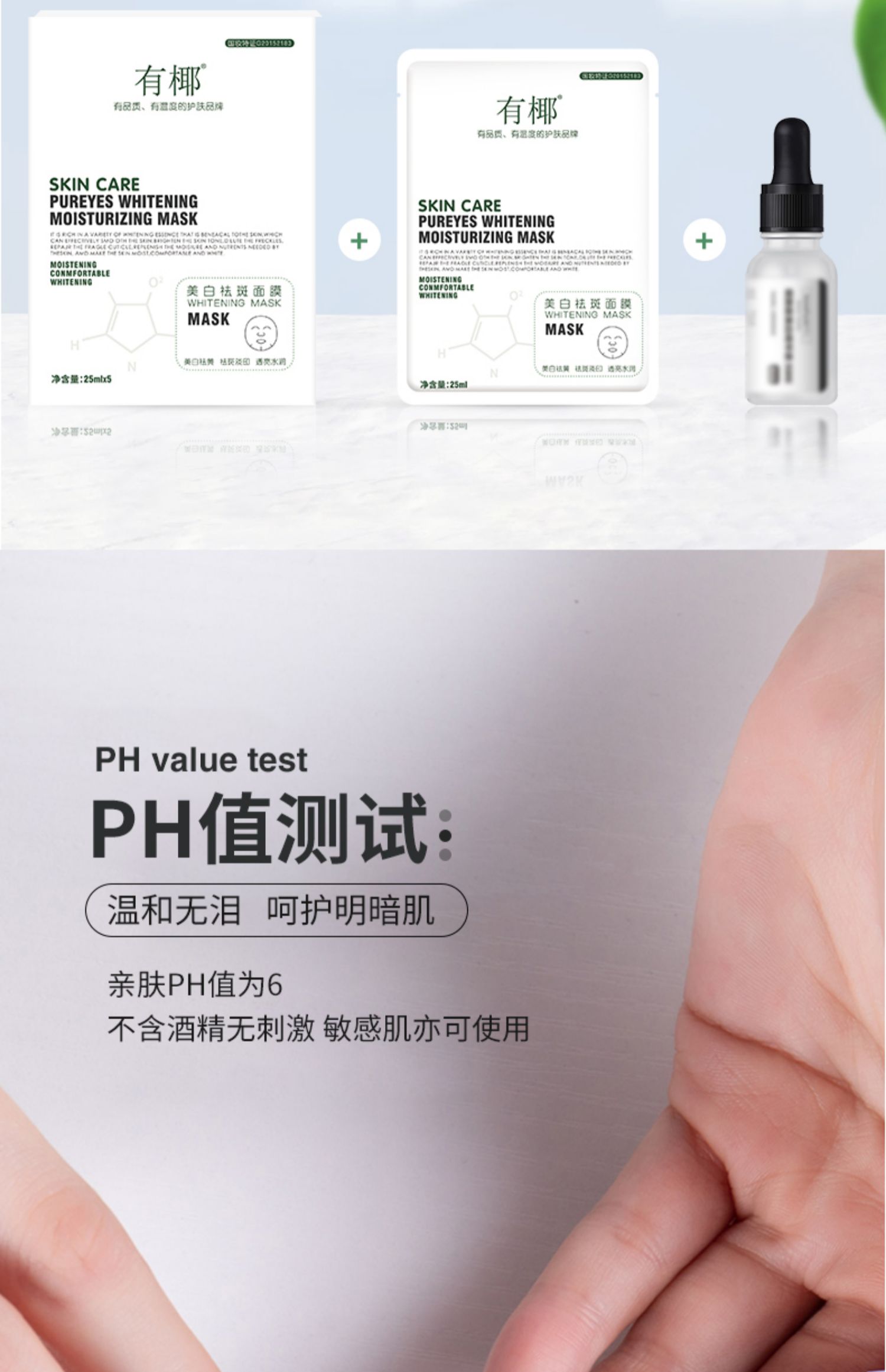 有椰美白面膜烟酰胺补水,保湿,祛斑,祛黄,去皱,收缩毛孔,提亮肤色国家认可的美白效果,一周用3次,补水保湿没话说,脸蛋还一次比一次白嫩