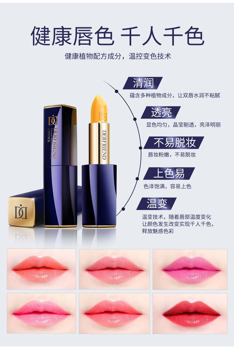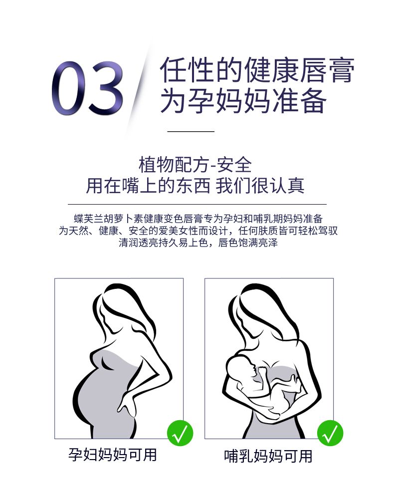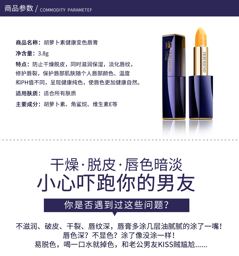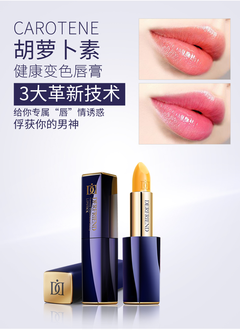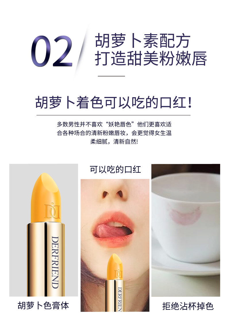 蝶芙兰!可以吃的胡萝卜素变色口红!进口植物凝萃配方,含维E角鲨烷!护唇又养唇,紧致滋润,不沾杯不掉色!特别推荐孕妈使用!