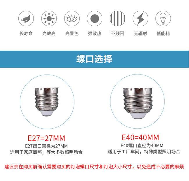 即开即亮,节能更省电,发光稳当,防频闪,使用寿命更长。两种光色、多瓦数可选,满足您的需求。