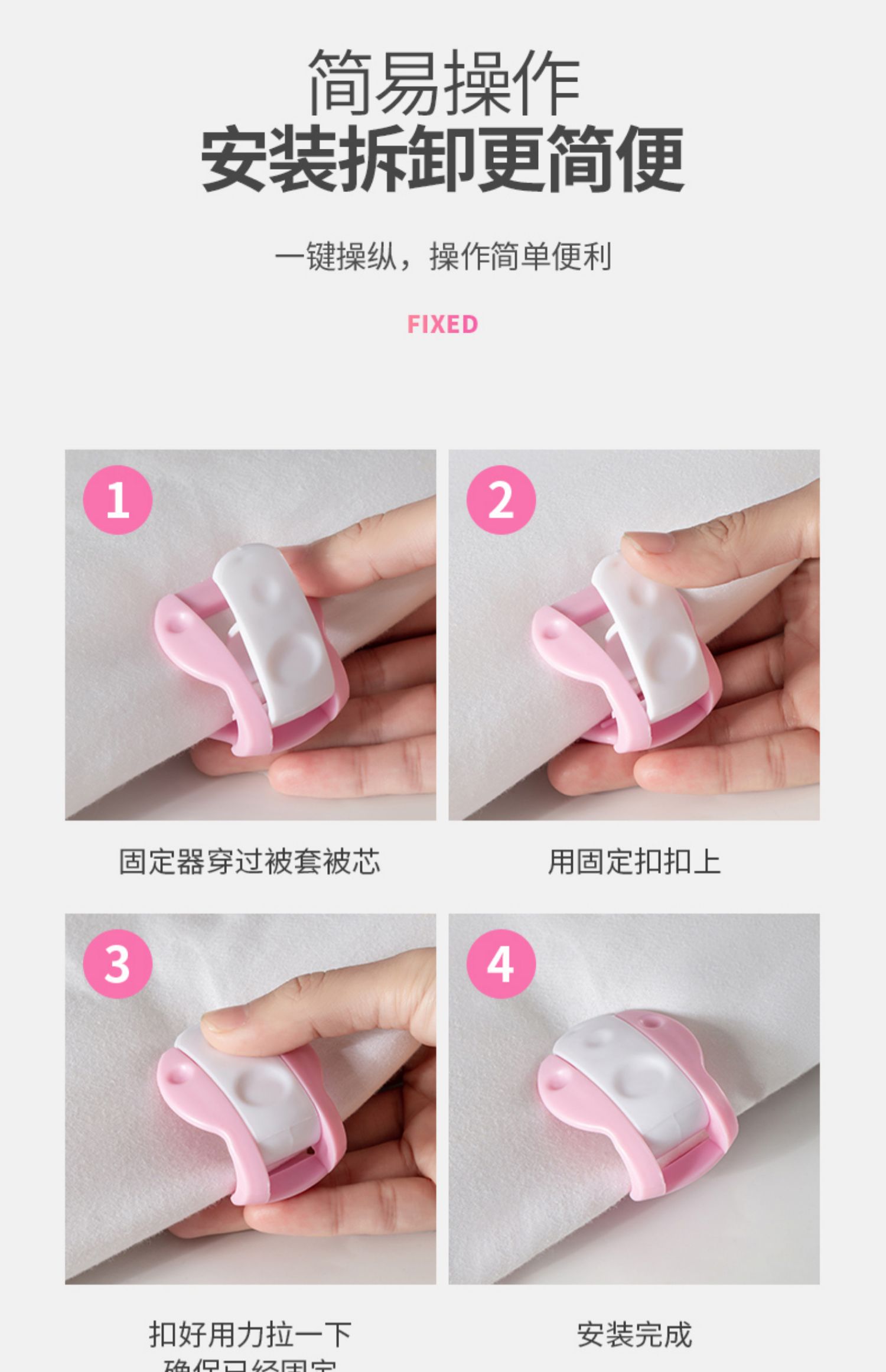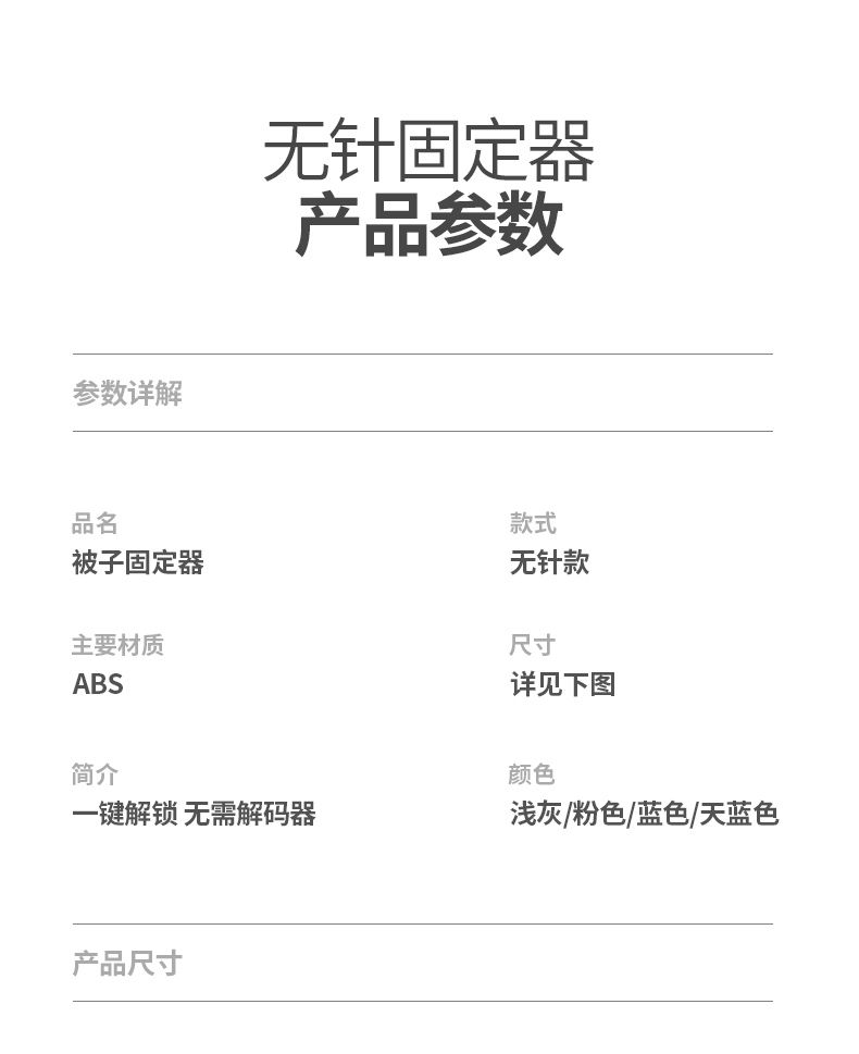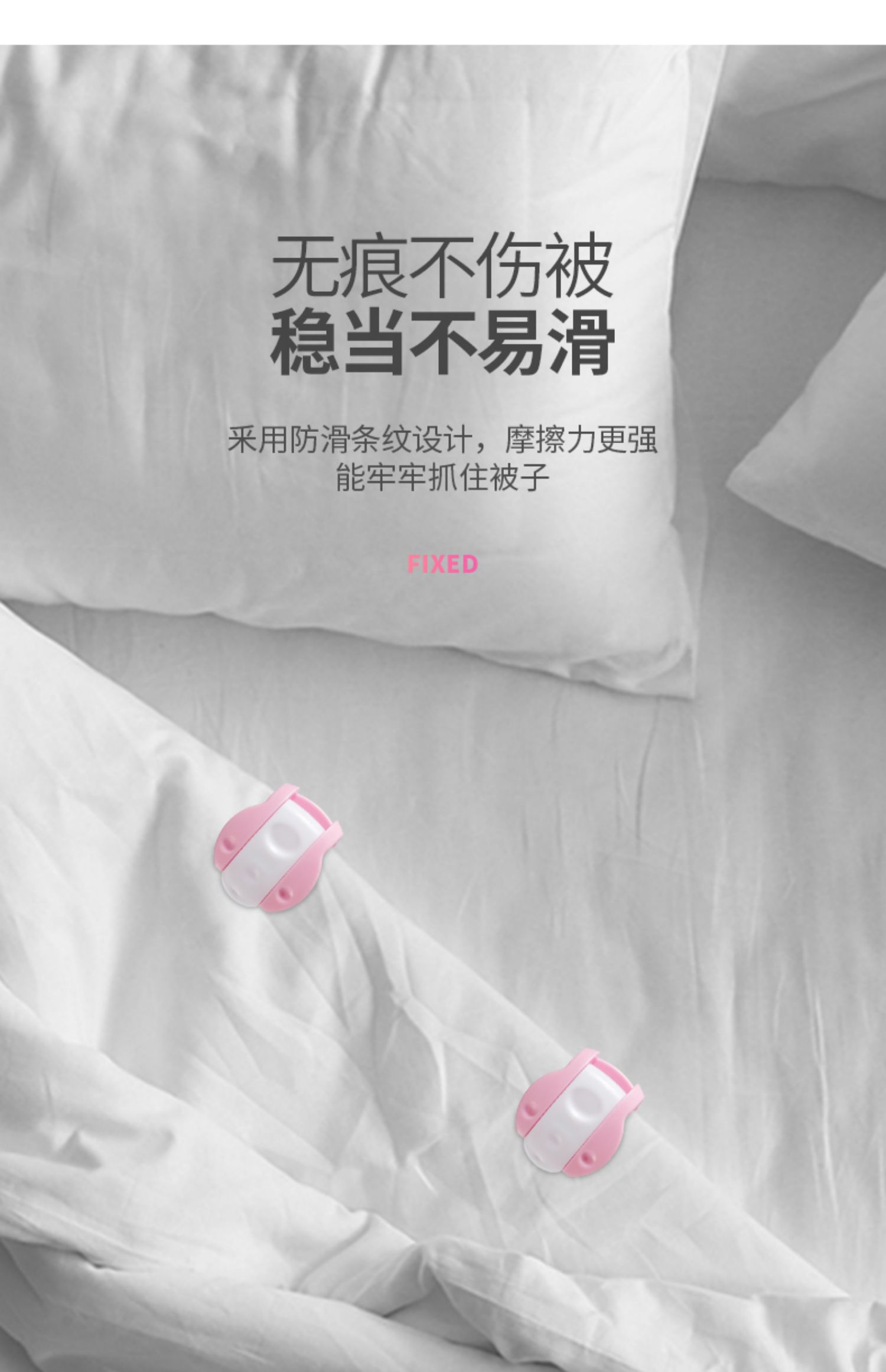 全面升级被子固定器,被子不分离,一键解锁,时尚外观,无针固定不伤被哦更稳固,更舒适,拒接冰冷,拒接不安全~~
