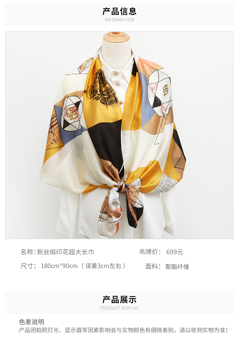 知名品牌上海故事。精选优质高品质面料,绸缎手感,细腻丝滑,柔软舒适,数码喷绘,色彩鲜艳,自然真实,做工精细,大规格面积,可做披肩头巾纱巾使用,一巾多用,防晒尽显女性高贵优雅气质~【赠运费险】