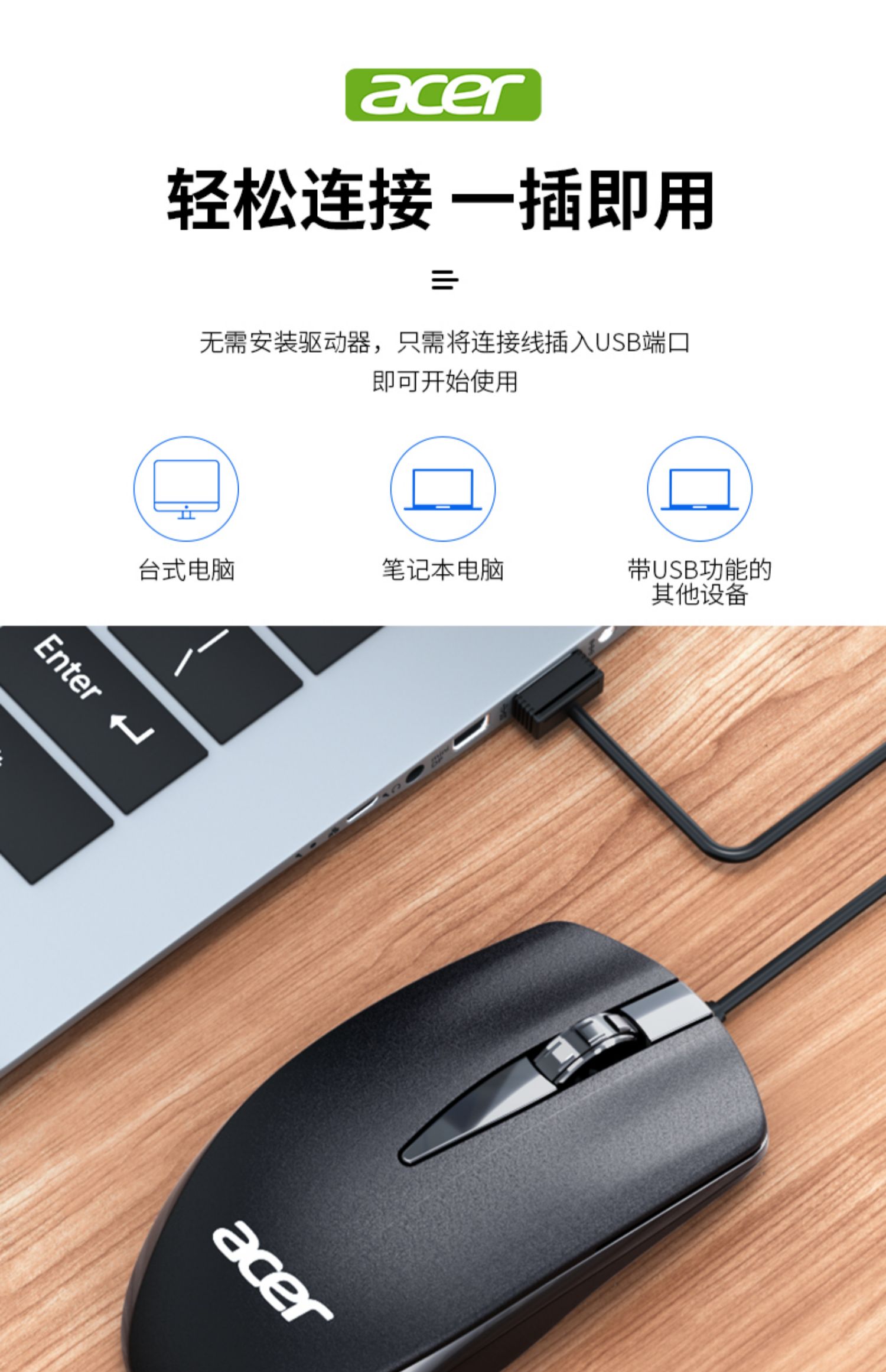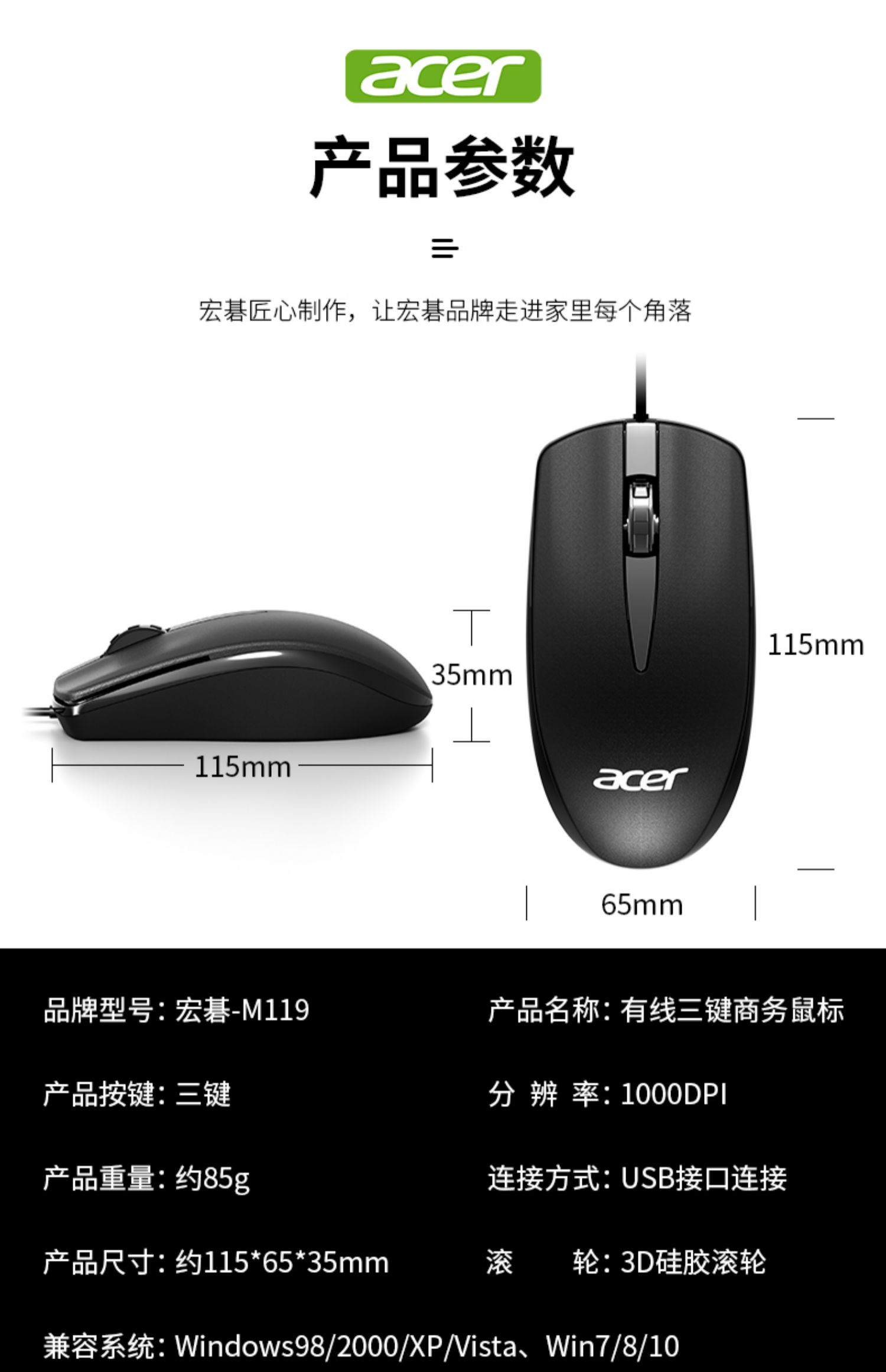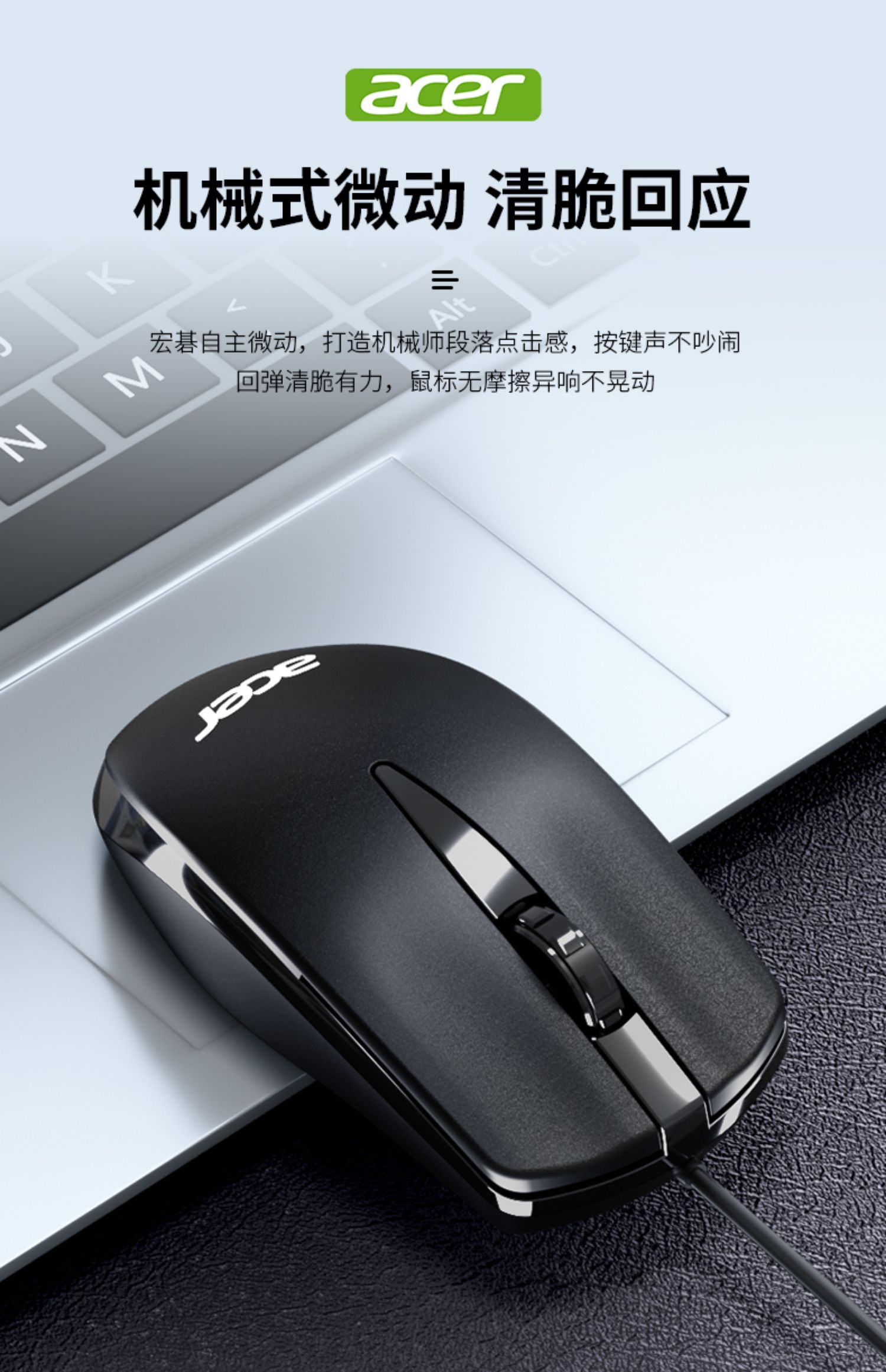 宏碁世界500强品质保证!传承宏碁工艺,人体工学设计,磨砂涂层,舒适握感!三档DPI精确定位,采用电竞光学芯片,办公游戏的好伴侣!现在下单送30天免费试用+2年质保!