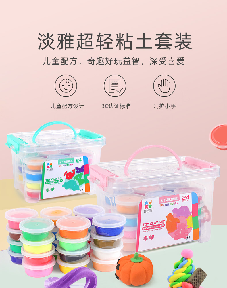 【赠叉勺+带收纳盒】淡雅超轻粘土套装,儿童配方,奇趣好玩益智,深受喜爱,软的有韧性,手感恰到好处,更容易塑形,特别添加护肤级甘油,保湿呵护小嫩手,高频率物理搅拌,柔软不沾手。【赠运费险】
