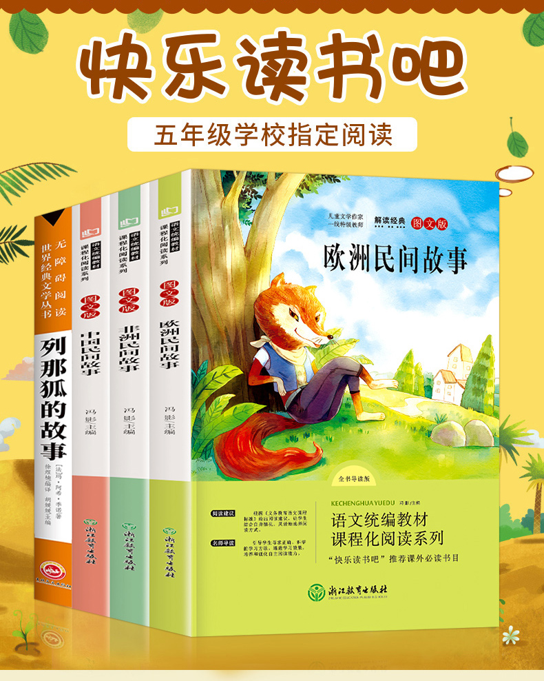 【全4册】快乐读书吧中国民间故事五年级必读经典书目,中国民间故事,非洲民间故事,欧洲民间故事,列那狐的故事,名家名作,教材同步,名师导读,激发兴趣,精美插图,大气生动,科学编排,印刷清晰。