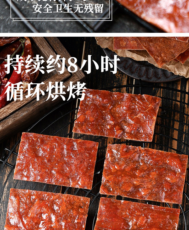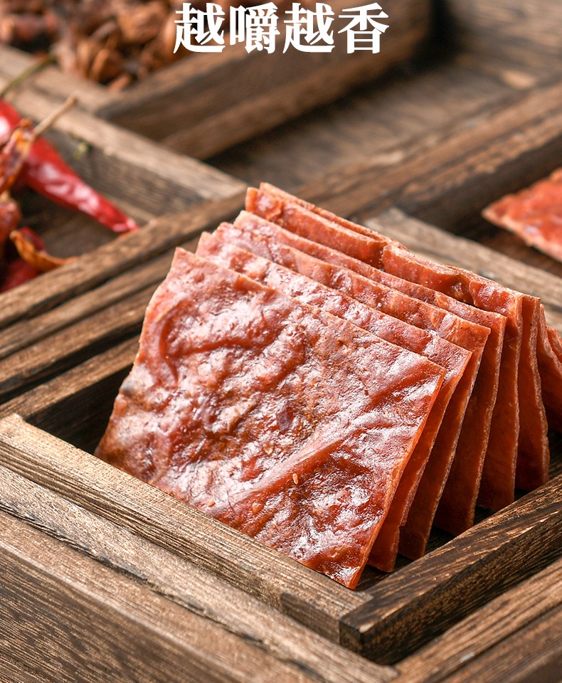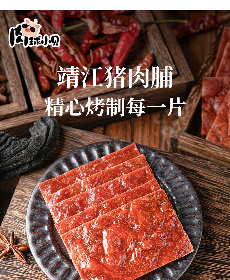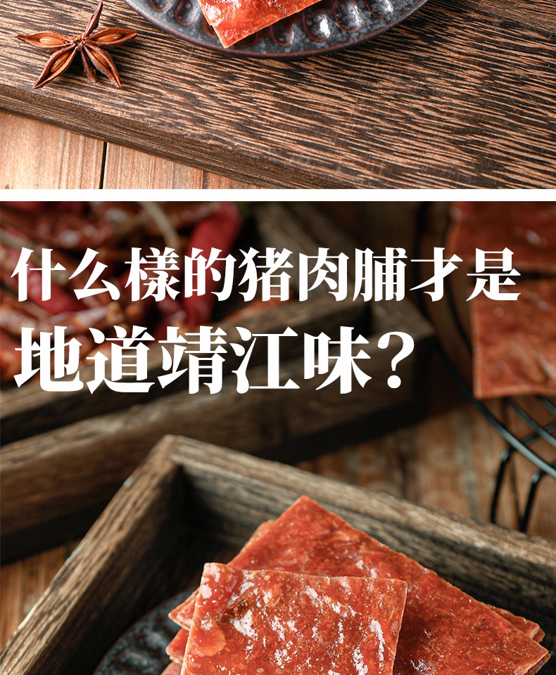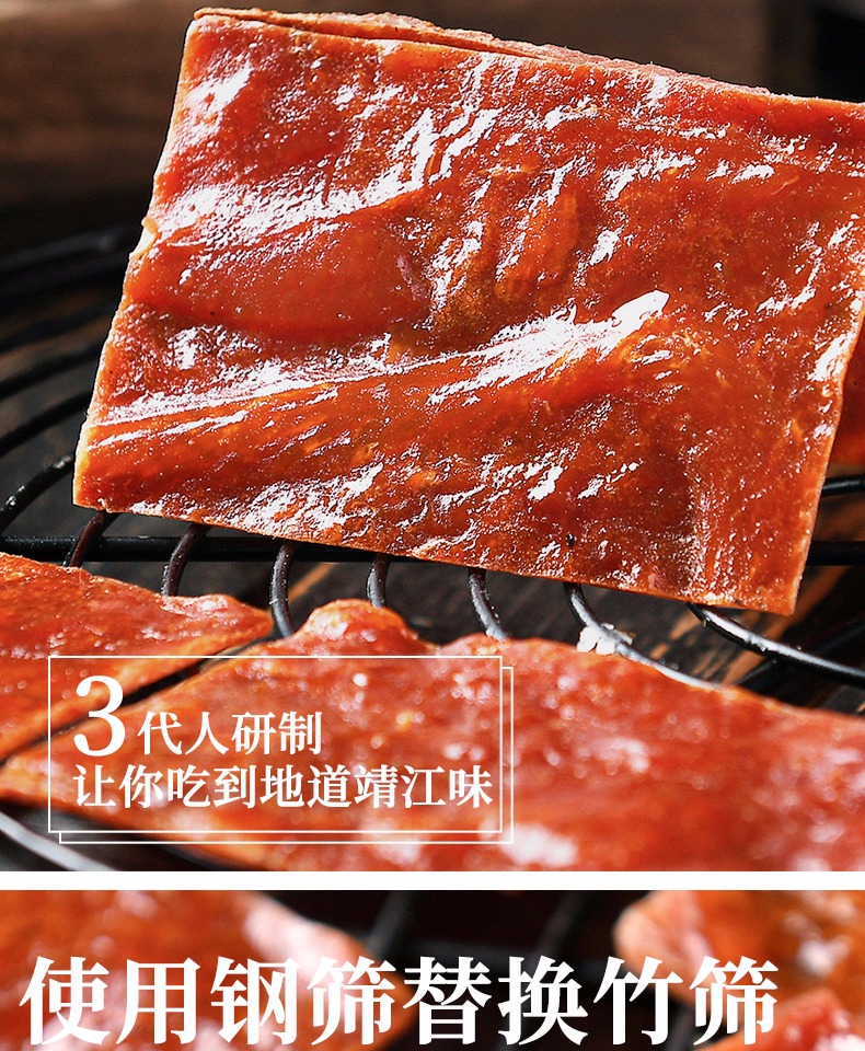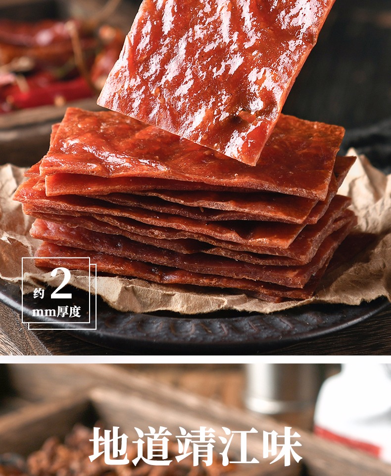 【拍3件只需15.8】靖江网红小零食,特色猪肉干,精选猪后腿肉,4档温度快烤,8小时循环烘烤,入口香醇不腻,是老手艺才有的味道,地道靖江味,越嚼越香,现抢购聚划算哟!