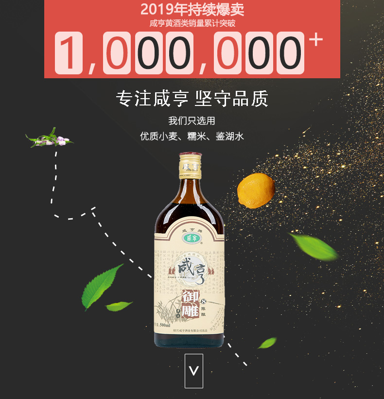 亲民热销!绍兴咸亨黄酒御雕8年陈酿!冬季驱寒暖胃,甘甜味美,酒香醇厚,回味悠长,并且也是烹调中不可缺少的主要调味之一,多种用法,赶紧抢购~【破损包退】
