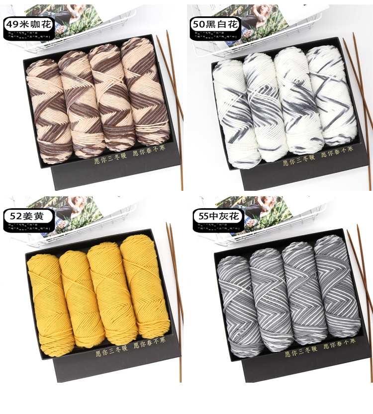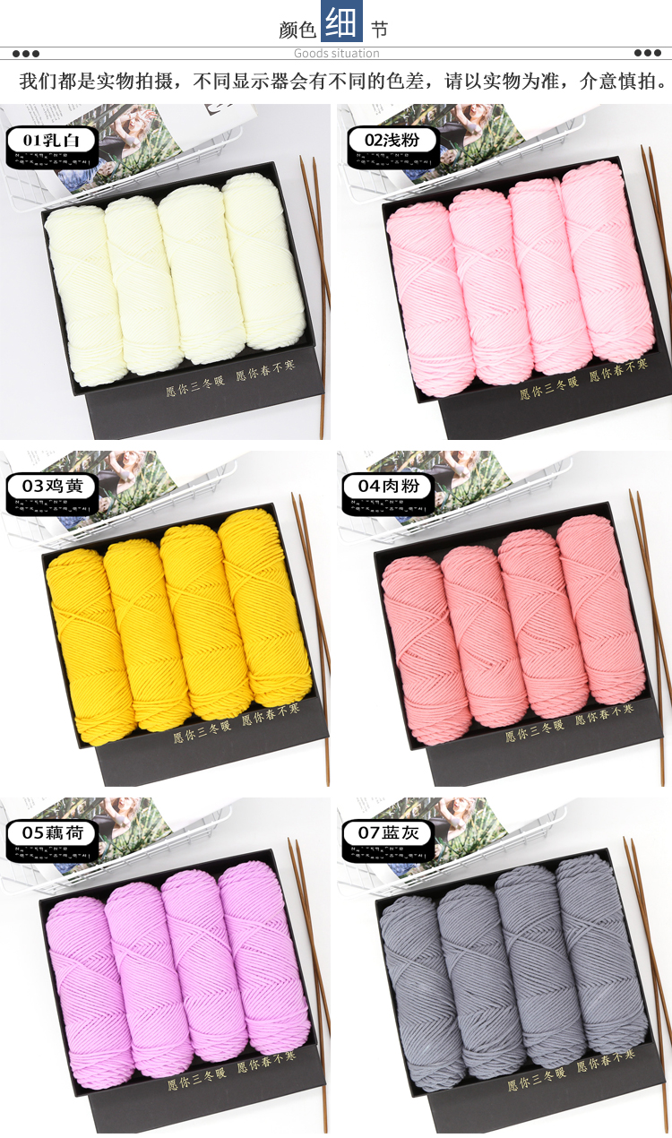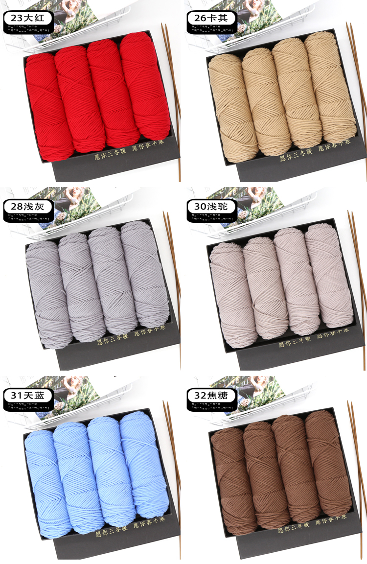 【毛线4团8两,送针+教程】精细选材,颜色多彩,保暖性强,细腻柔软,亲近肌肤,无刺激,有弹性,可编织毛衣、围脖等,舒适手感,环保健康,给家人的爱!