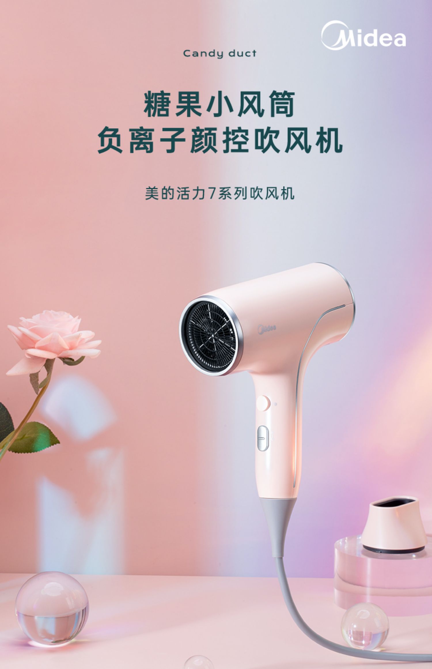 美的活力7系列吹风机,糖果小风筒,10倍负离子狂走干枯不毛躁,两档调速,一键冷风设计,控油锁水,轻松造型,滋养秀发,让秀发柔顺有光泽!