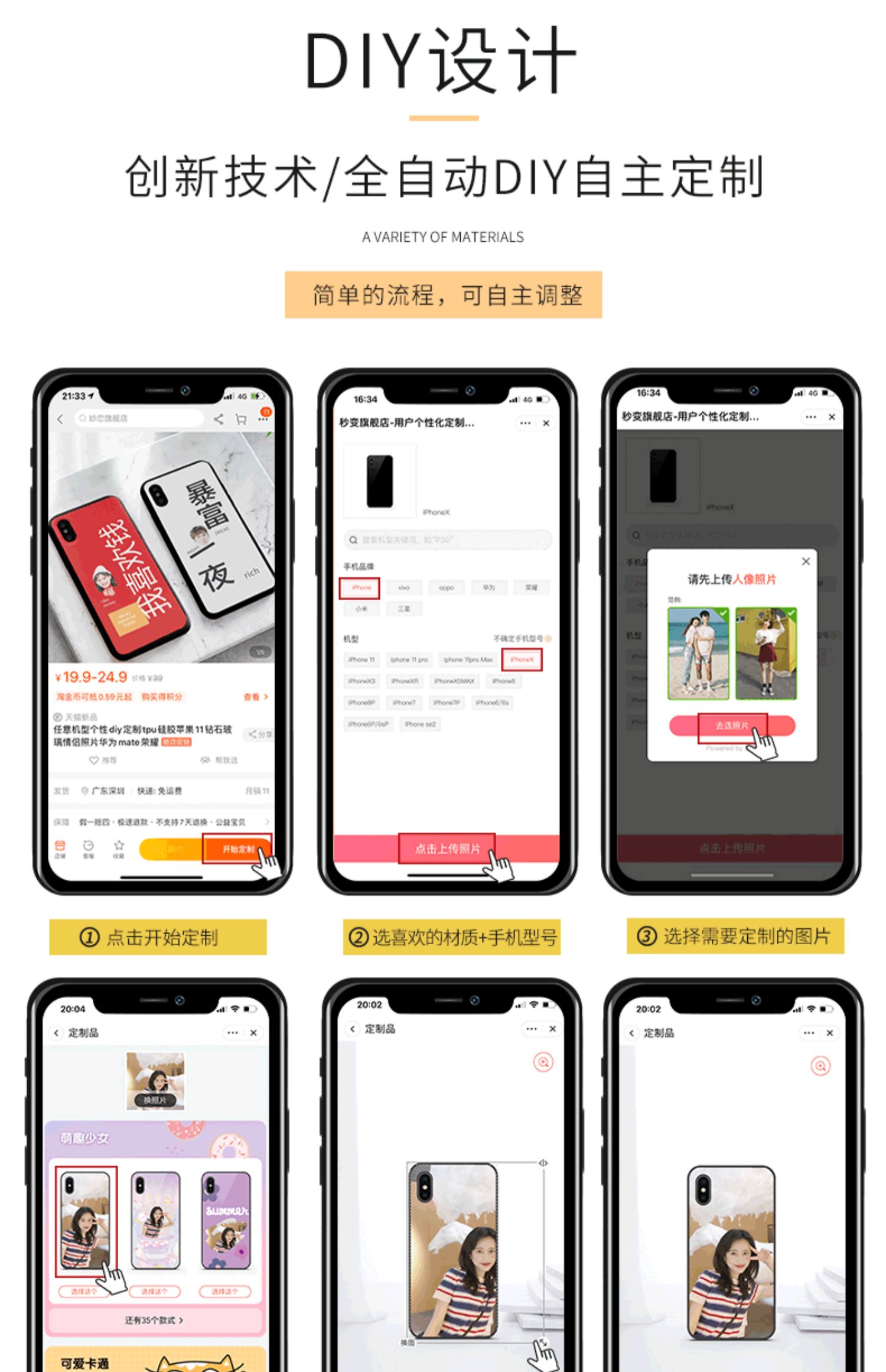 自选图片,创新工艺,全自动定制,500款式任你选,DIY自主定制,舒适质感,超薄裸机手感,四面全包软边,无缝贴合,轻松装卸不伤爱机~赠运费险