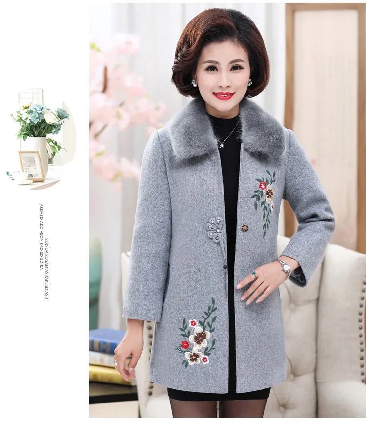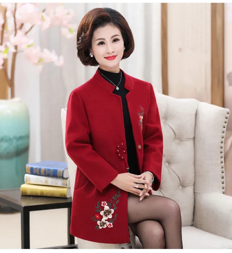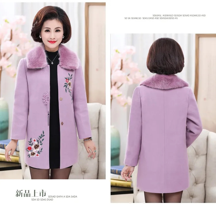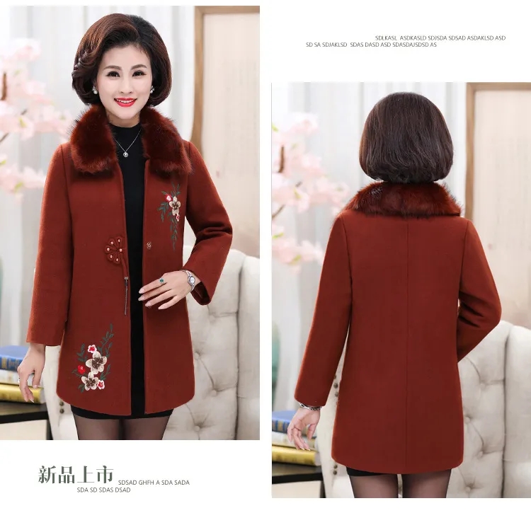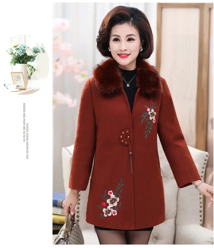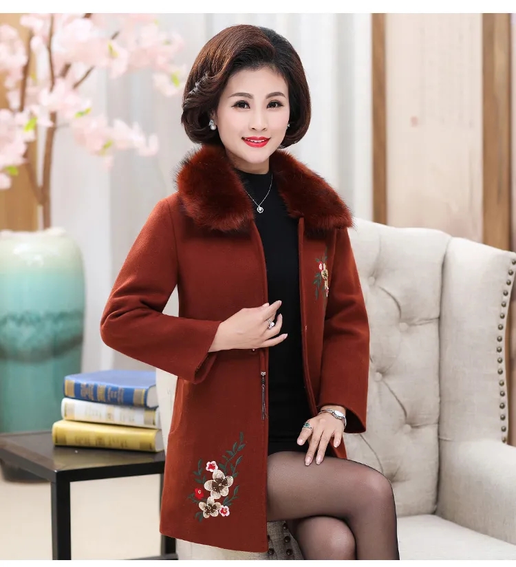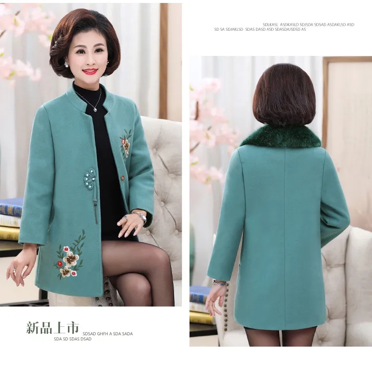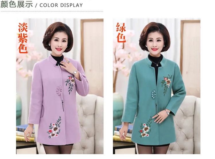 新款加厚中长款毛呢外套,宽松版型,修饰身材曲线。毛呢外套,保暖效果好。毛呢妈妈装外套优雅又时尚,气质毛呢外套,让妈妈美出新高度