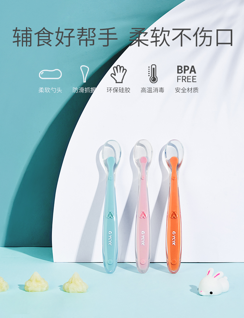 【两只装,全硅胶包裹,可当做牙胶】锻炼宝宝自主吃饭的神器!进口硅胶软勺,可高温水煮消毒,吃饭喝汤,不怕戳到嘴巴!每一口都吃得放心~【赠运费险】