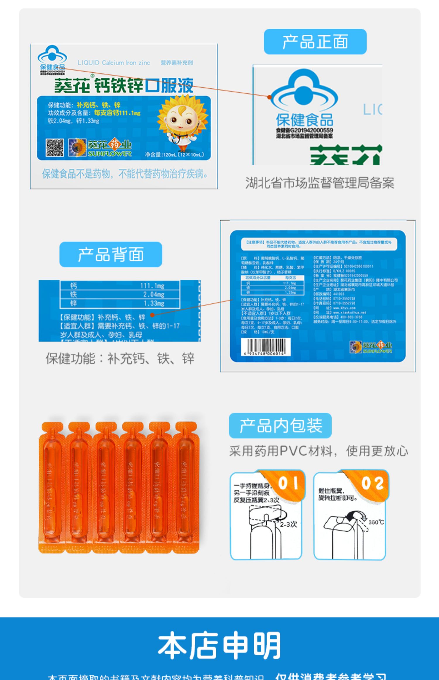 【拍5盒发8盒】线下药店都有卖,钙铁锌口服液儿童成长补钙,宝宝葡萄糖酸钙锌口溶液,一支补三样,补钙,补锌,补铁,大人小孩同补,液体钙易吸收~【赠运费险】