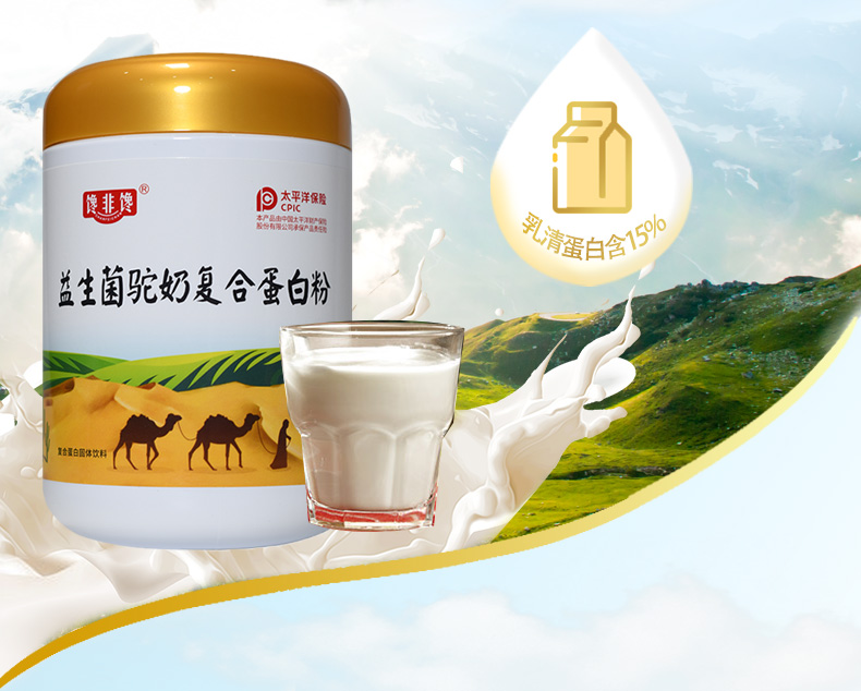 中国太平洋保险承保,品质有保障!益生菌驼奶蛋白粉,奶中贵族,双峰骆驼产奶较少,营养价值更高,全脂驼乳粉,无任何添加!儿童老年皆可哦~